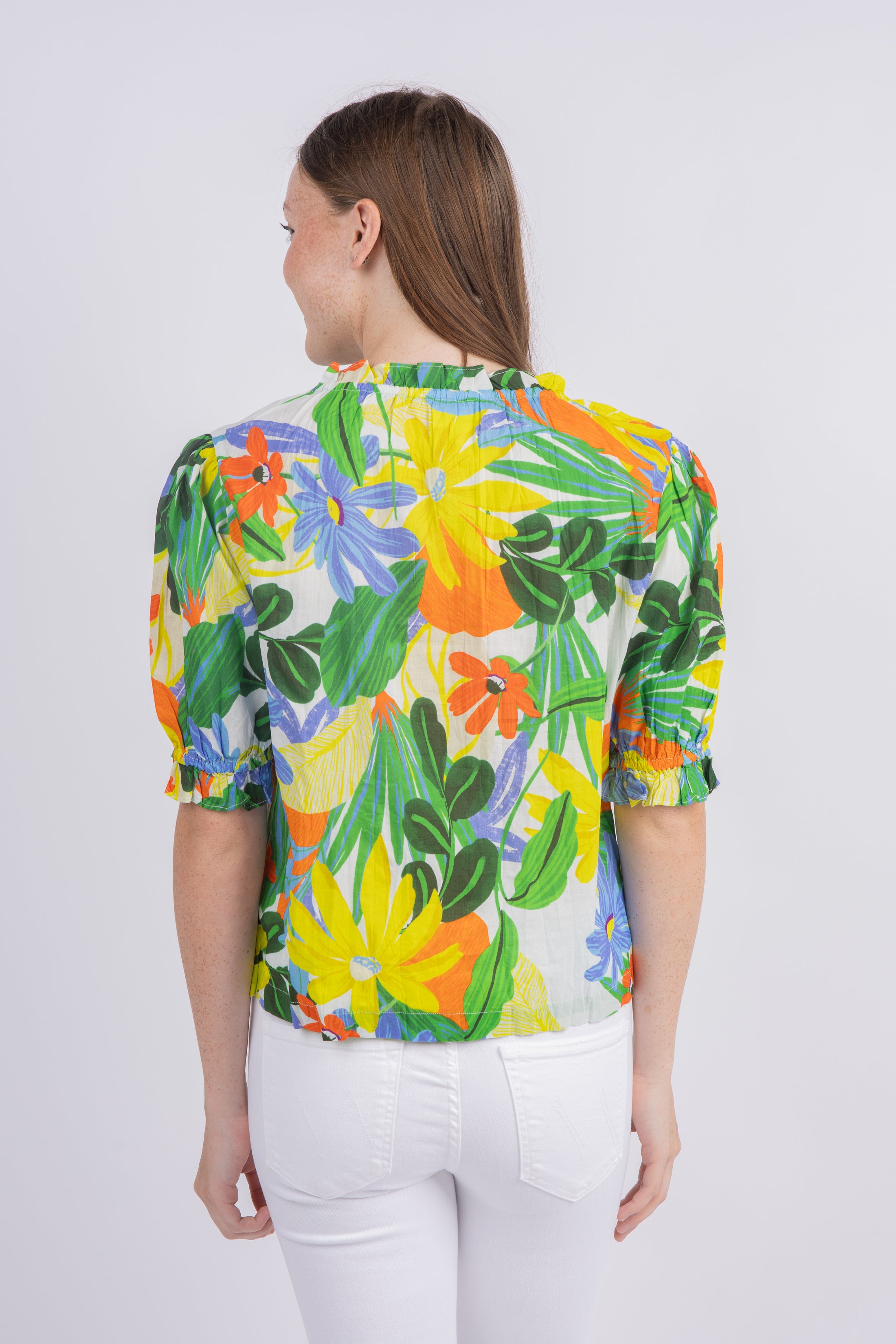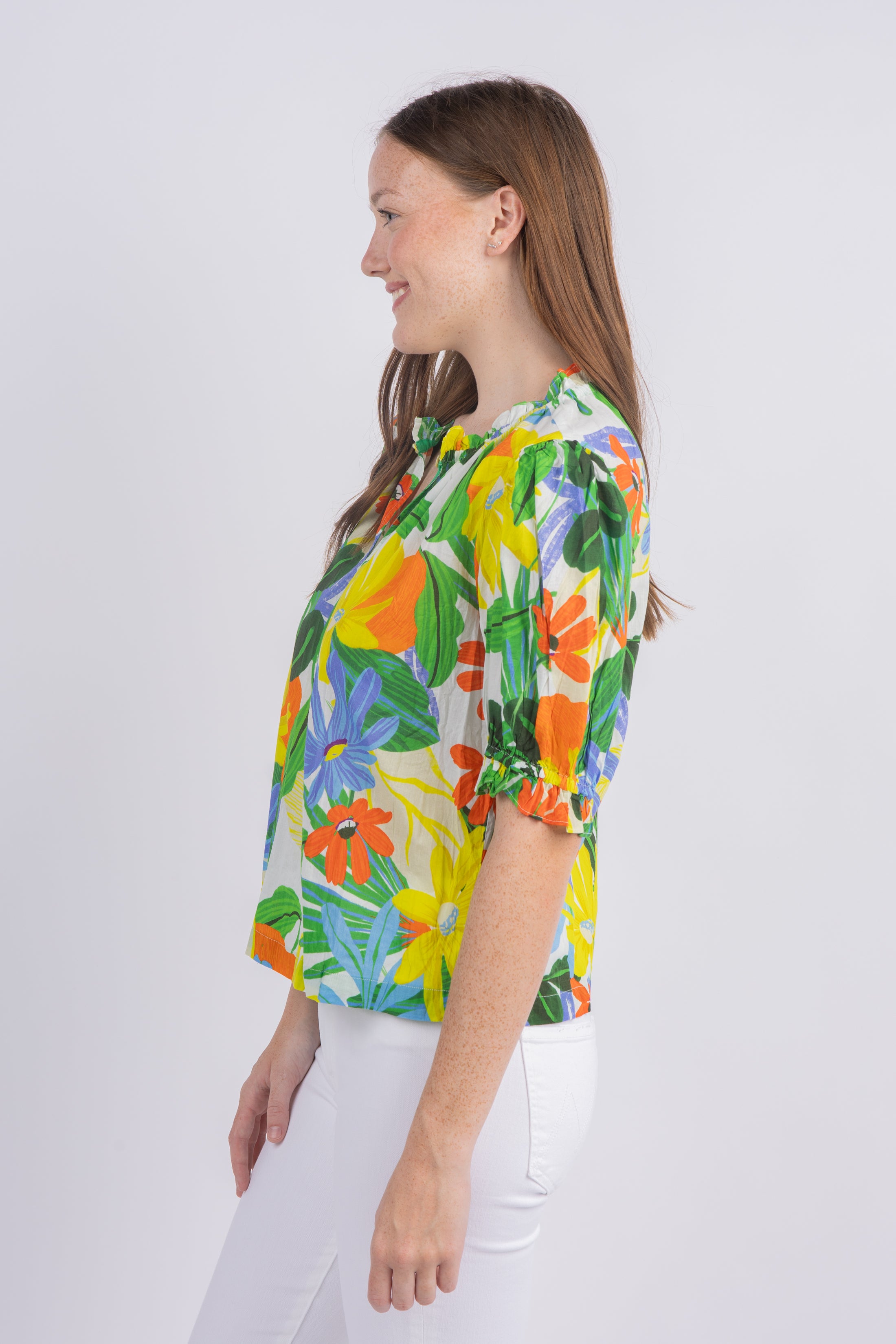 Bring effortless romance and timeless elegance to your wardrobe with the Velvet Carrie Top in Mahalo. This luxurious top features a beautiful floral print on cotton cambric fabric, with a button closure V-neckline and puffed sleeves for the perfect bohemian touch. Enjoy all-day comfort and a charming look that will never go out of style!