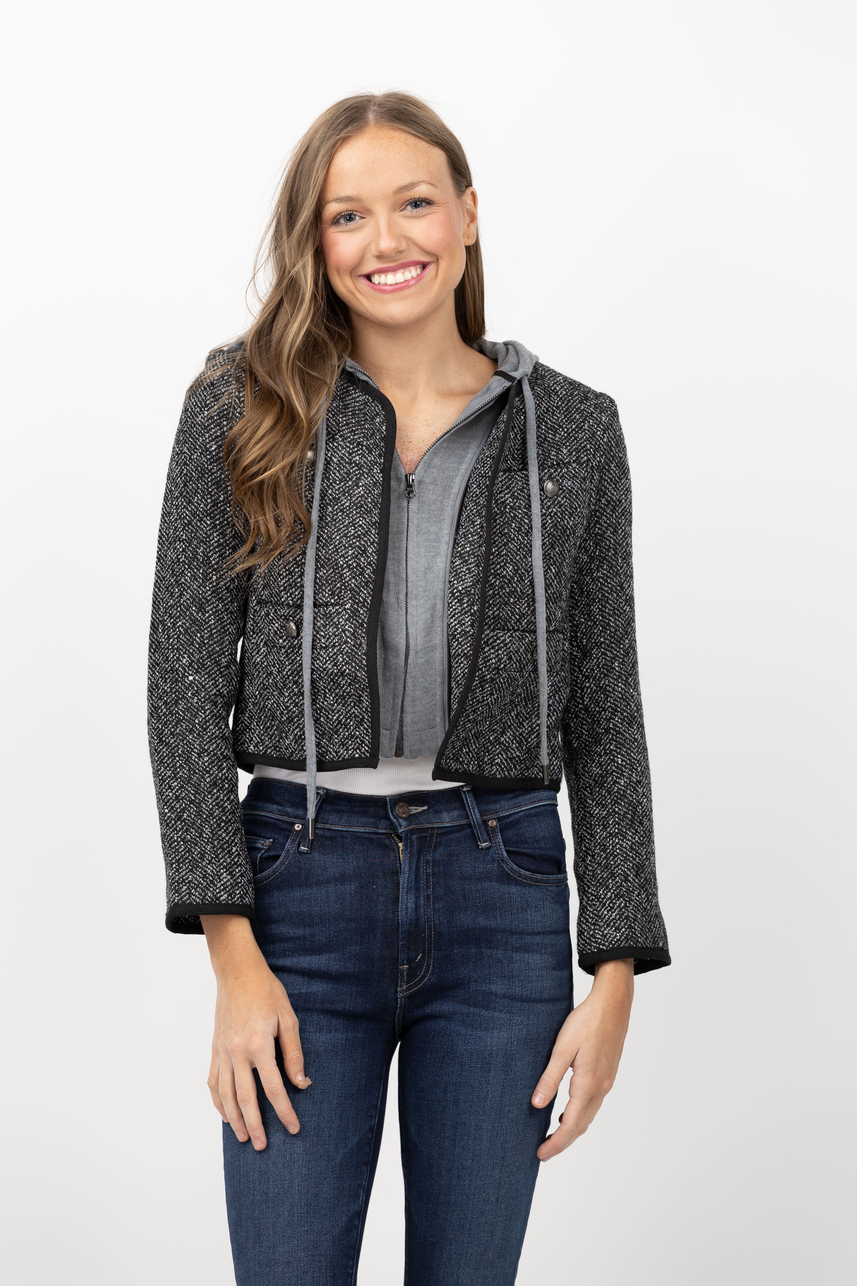 Central Park West Raya Tweed Dickie Jacket in Black/Grey