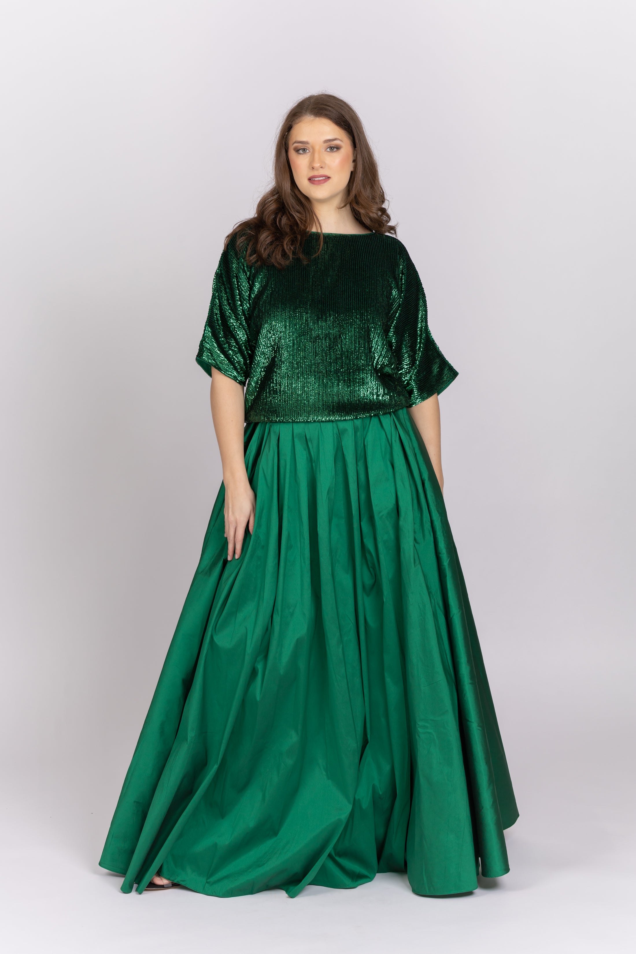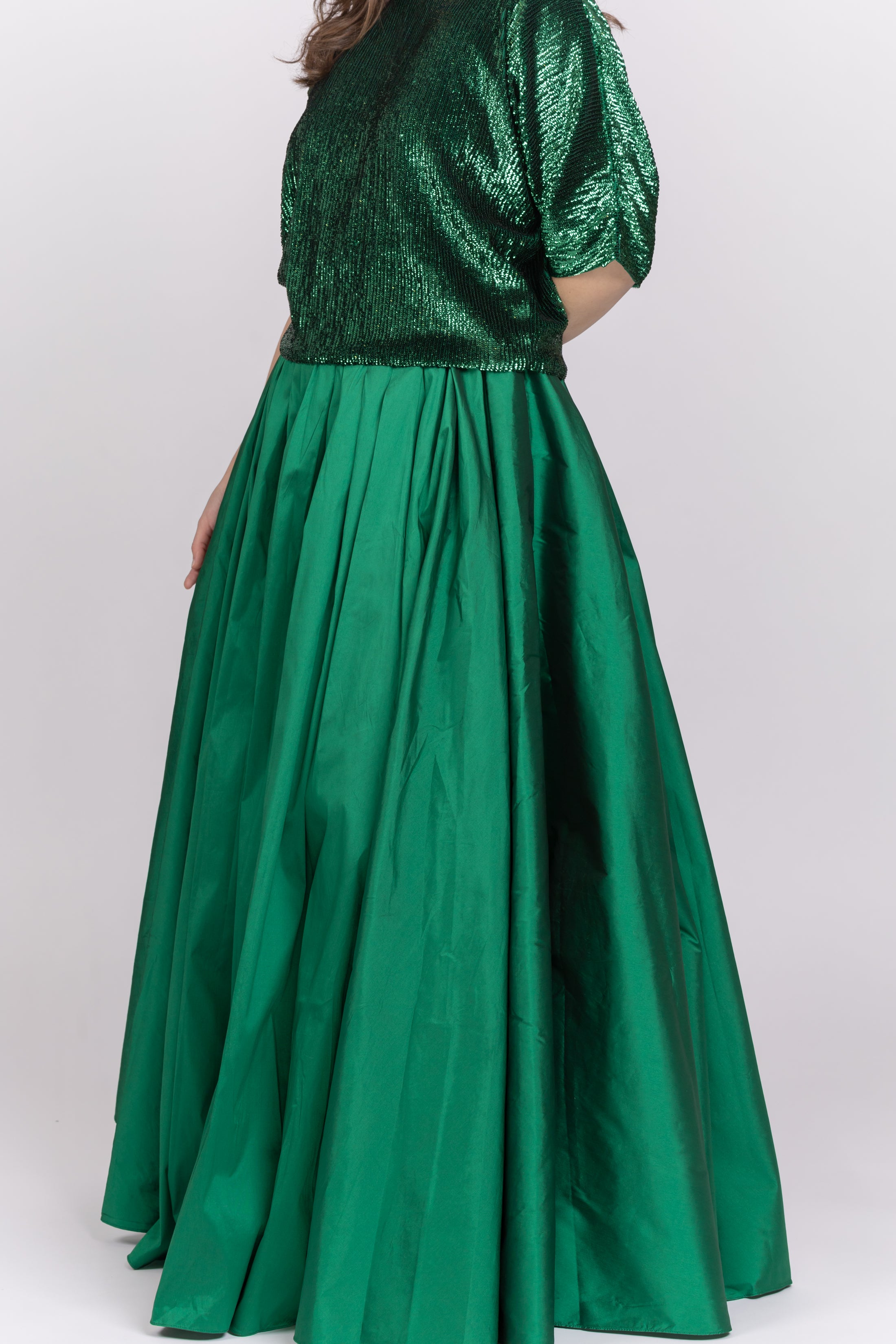 Emily Shalant Taffeta Ballgown Skirt in Emerald