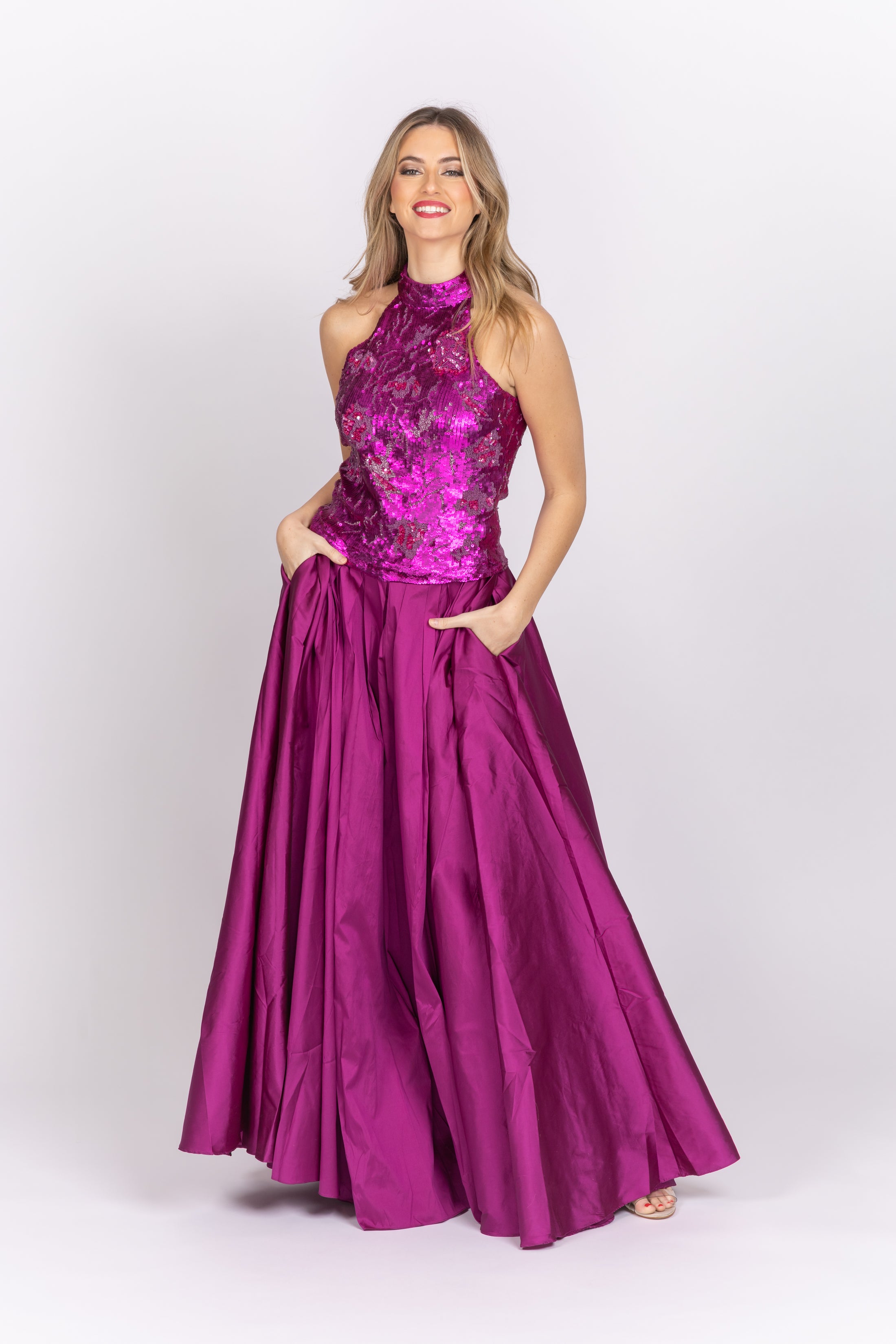 Dramatic ball skirt in gorgeous taffeta take our tops to the next level of glam! Perfect color match for the monochromatic look or mix and match.  Side seam pockets.