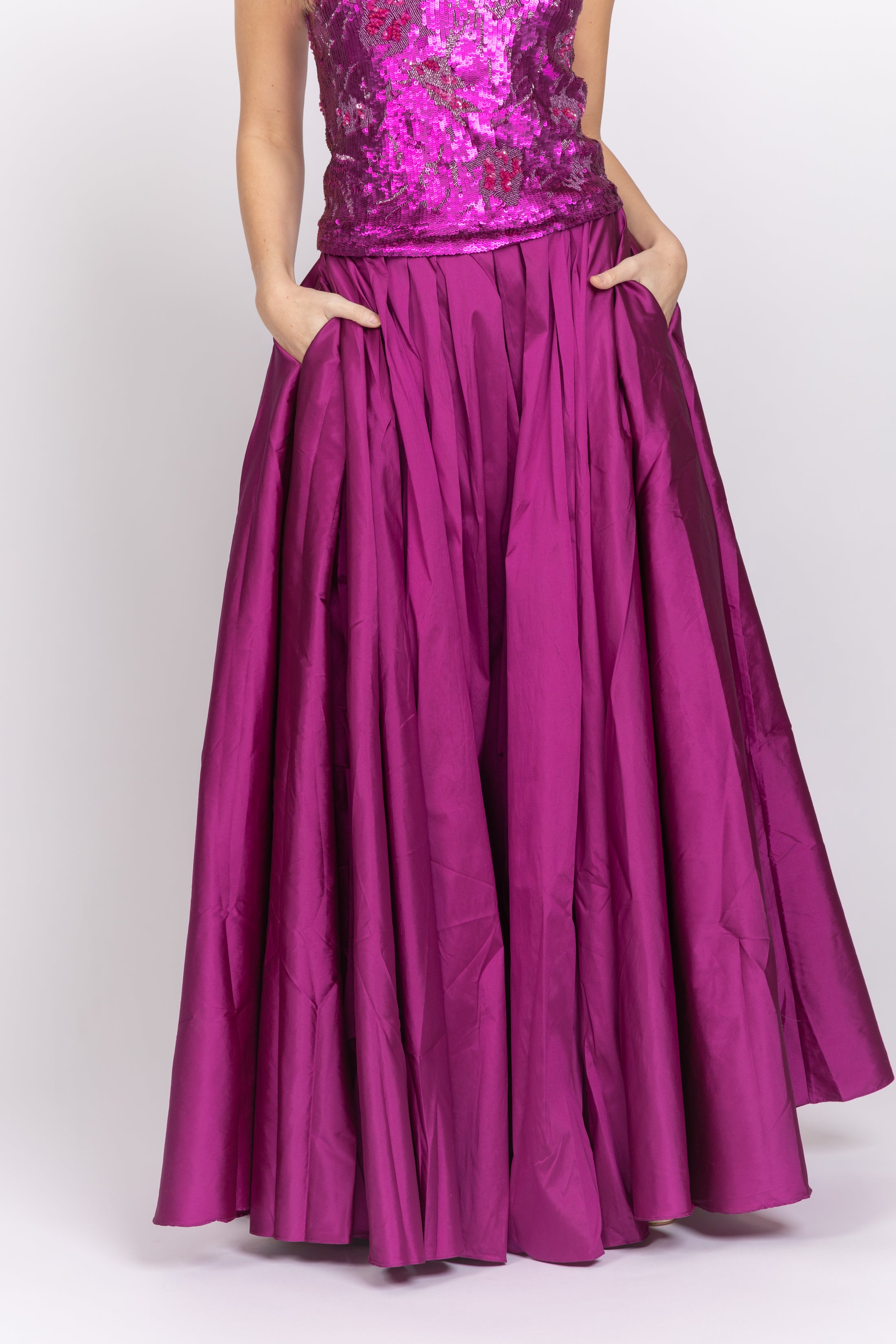 Emily Shalant Taffeta Ballgown Skirt in Magenta