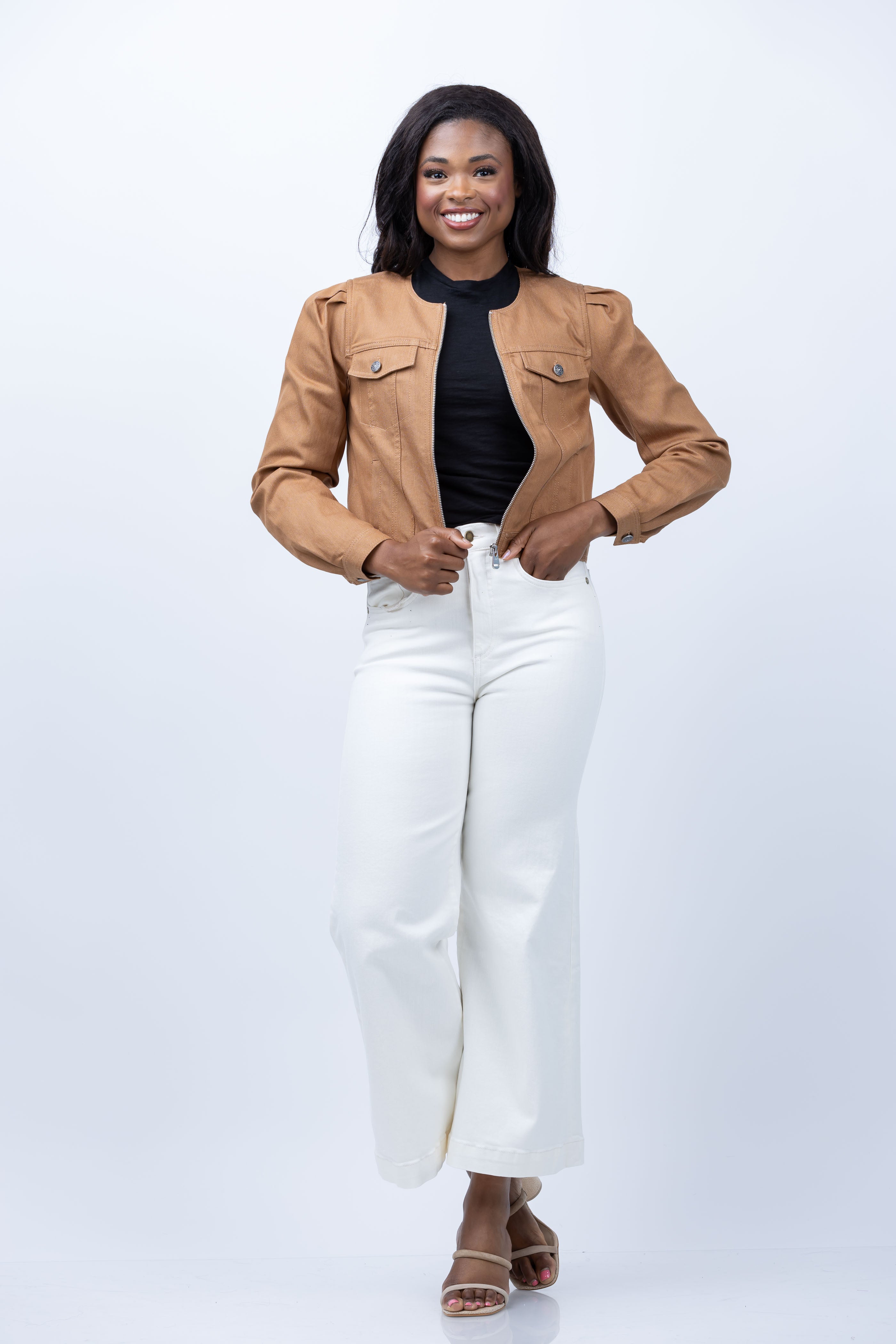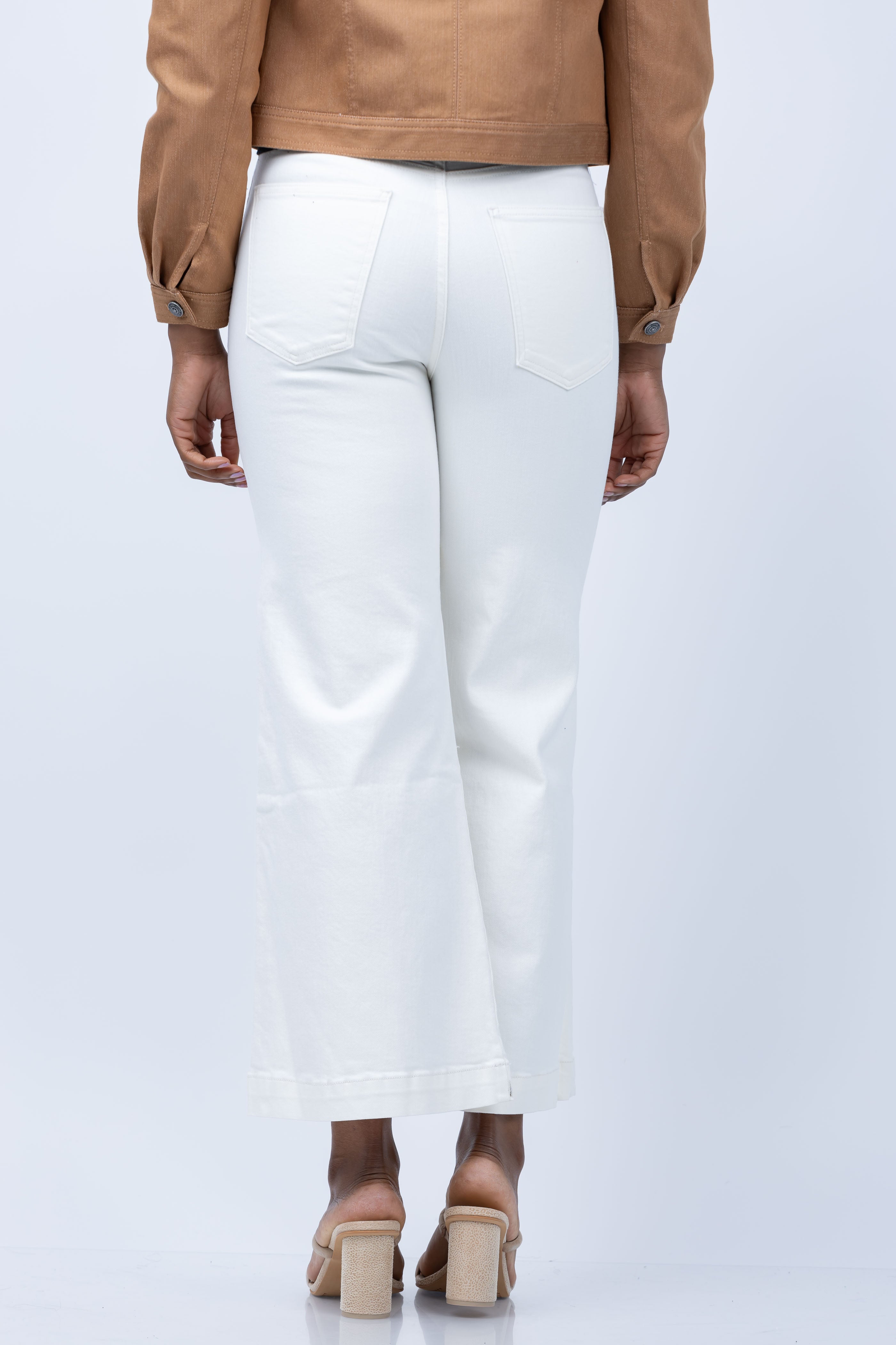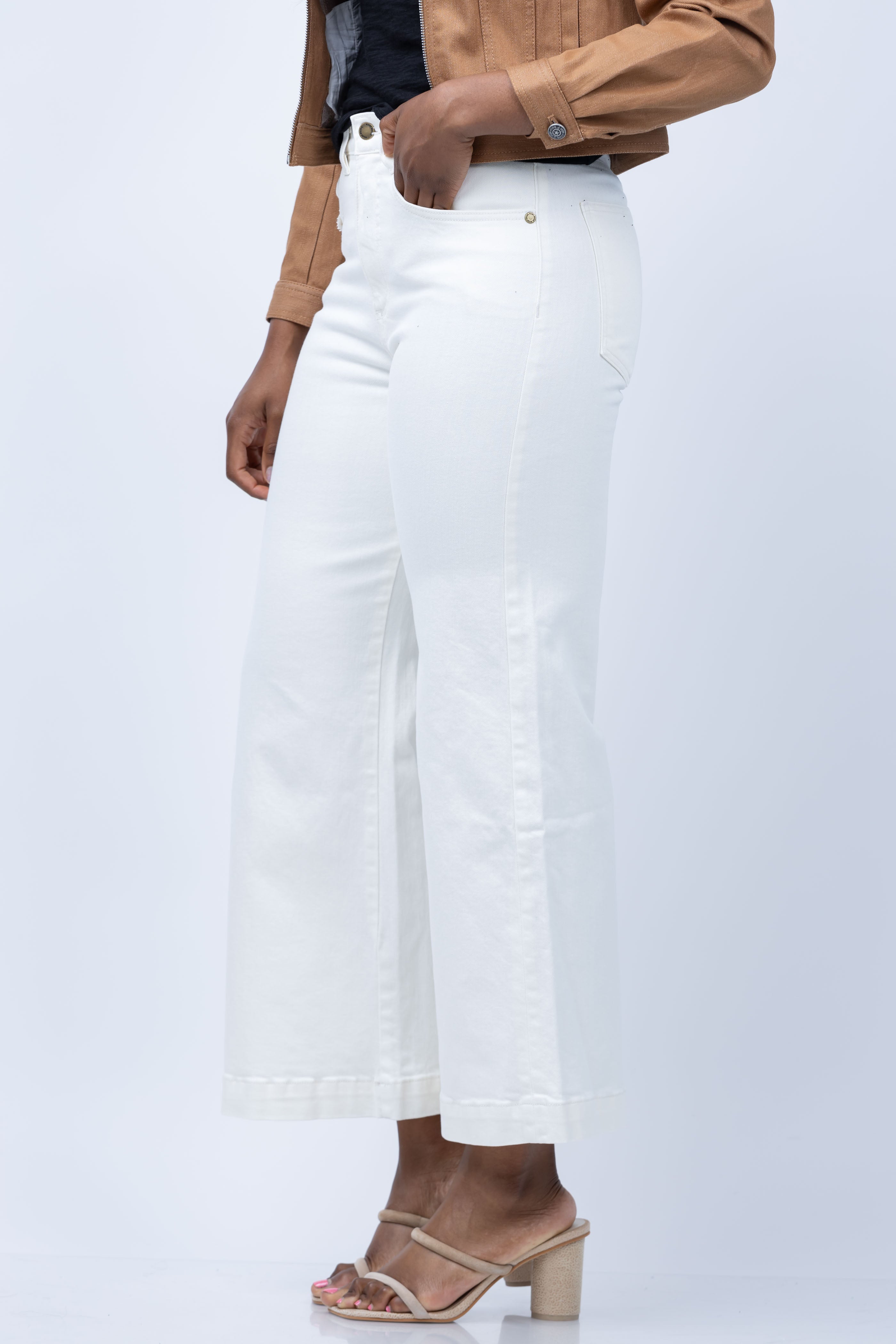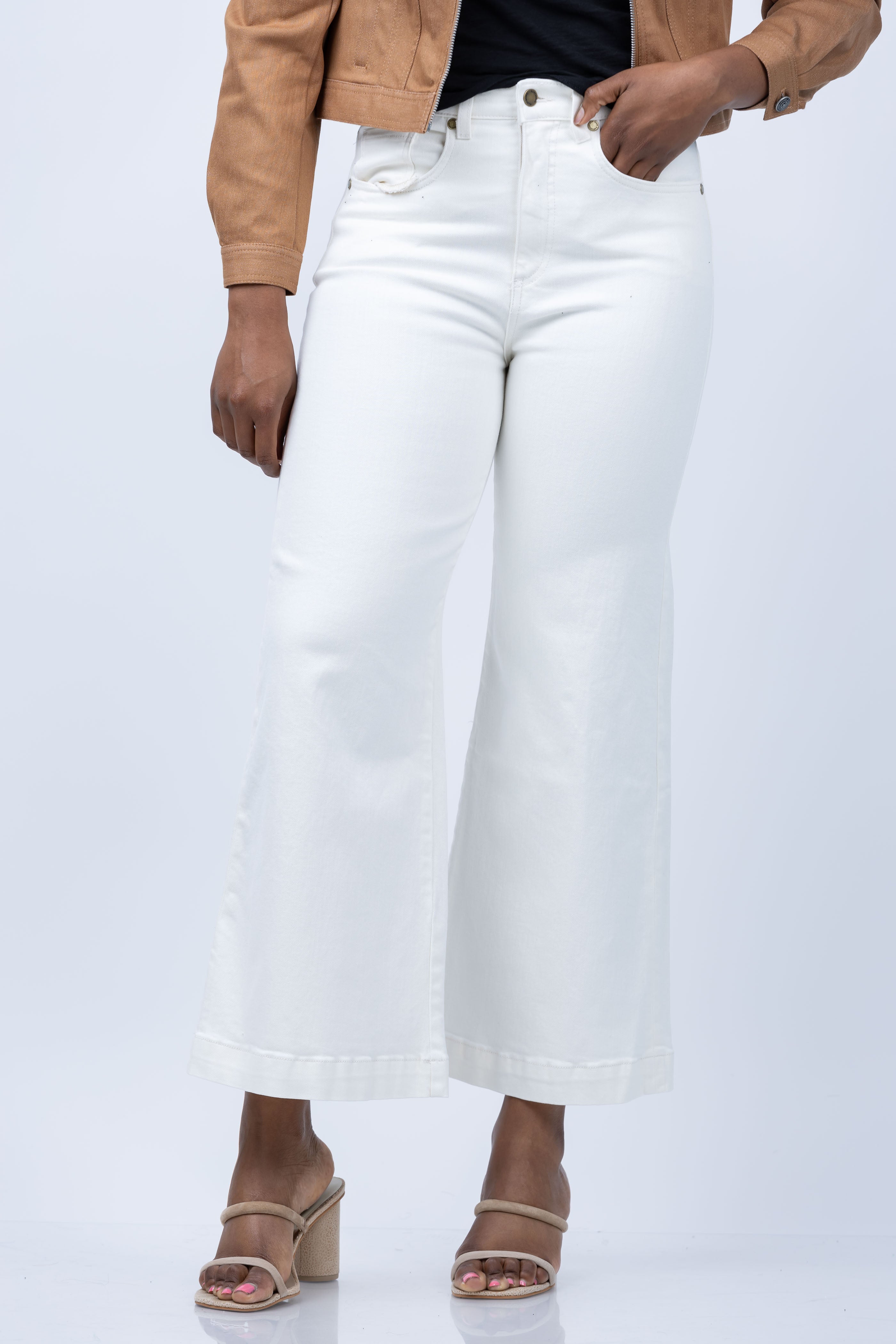 Elevate your style with the versatile Cropped Tyra jeans from Ramy Brook. With a flattering high-waisted fit and statement wide-leg design, these light wash denim jeans are perfect for any occasion. From running errands to a night out, the Cropped Tyra adds impact and style to any look.