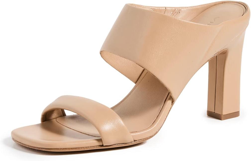 Vince's Quinn mules feature a two-band leather upper and self-covered block heel.