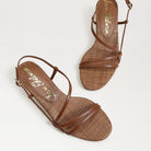 The Cora Kitten Heel Sandal brings a chic twist to the strappy silhouette, pairing a sculpted open toe with a comfortable kitten heel that's ready for any dress occasion. Bold yet refined, this design offers day-to-night versatility with effortless flair.