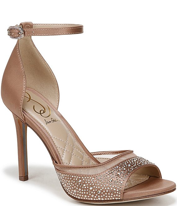 Elevate any outfit with the Sam Edelman Krissa Ankle Strap Sandal! The perfect nude heel for any occasion, with added rhinestone embellishment for a touch of glamour. Step into style and comfort with this staple piece.