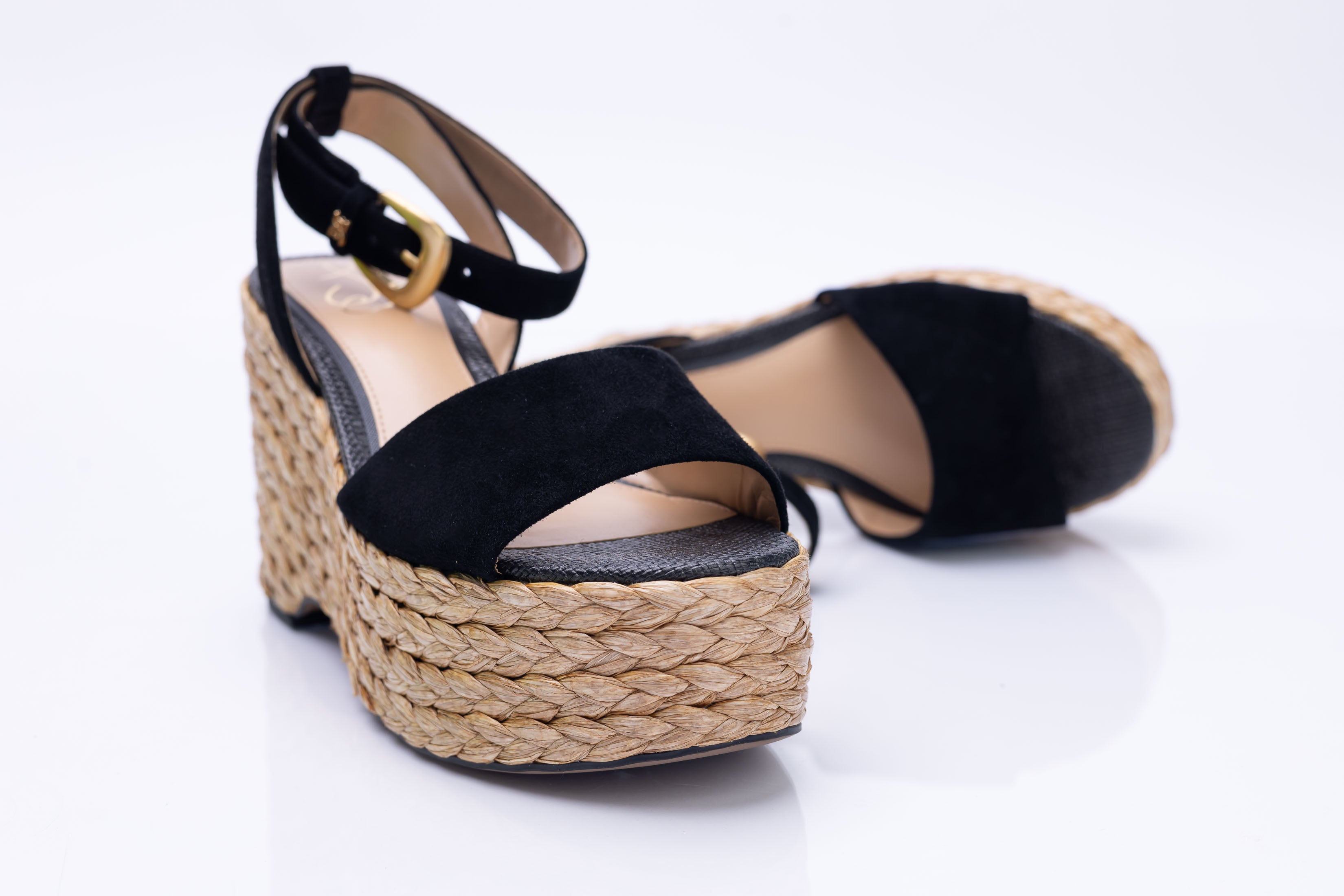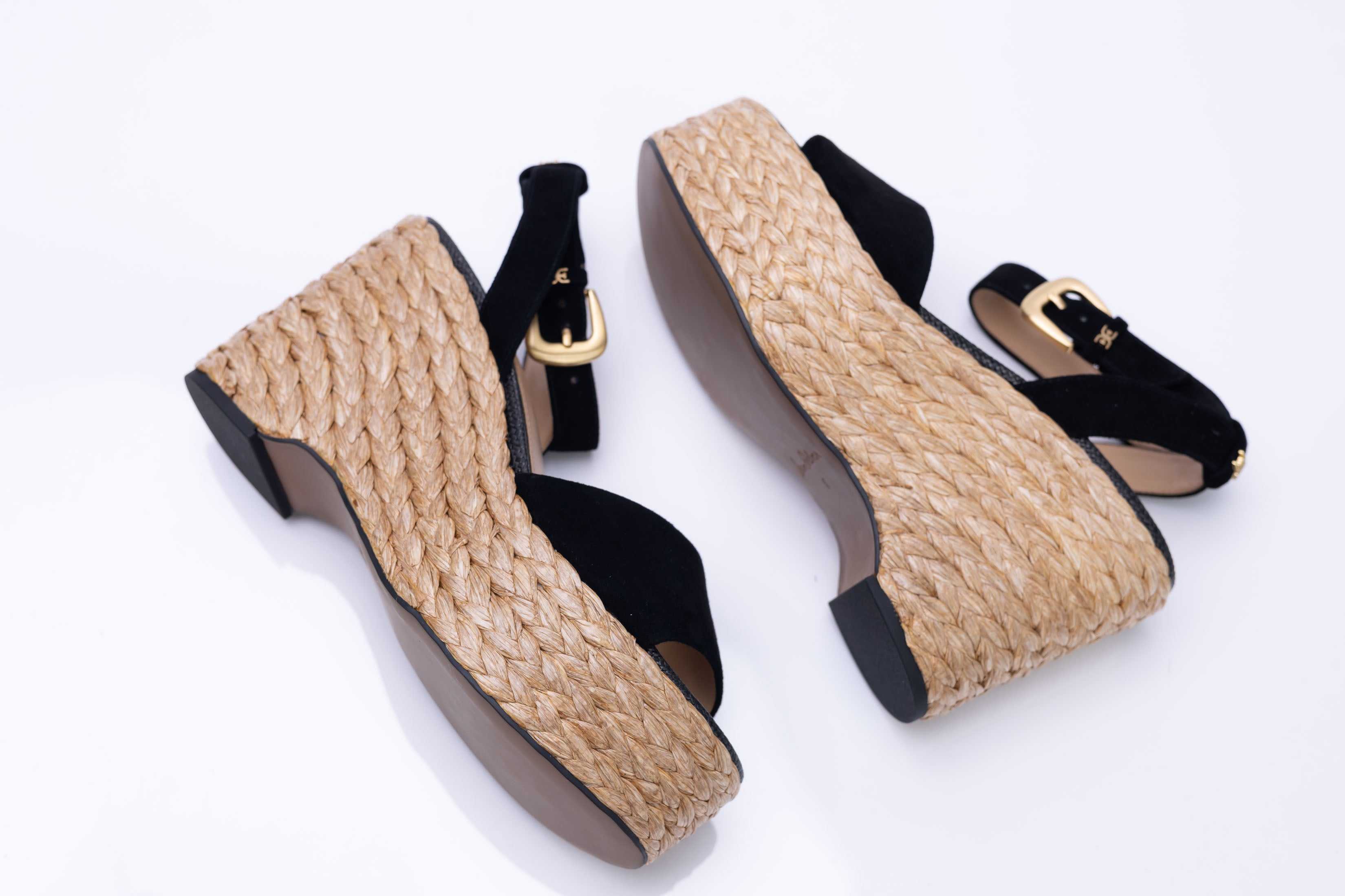Picnic-ready woven espadrilles with chunky braided platform soles. Mix well with absolutely everything in your summer/spring wardrobe and enjoy the extra sunshine.