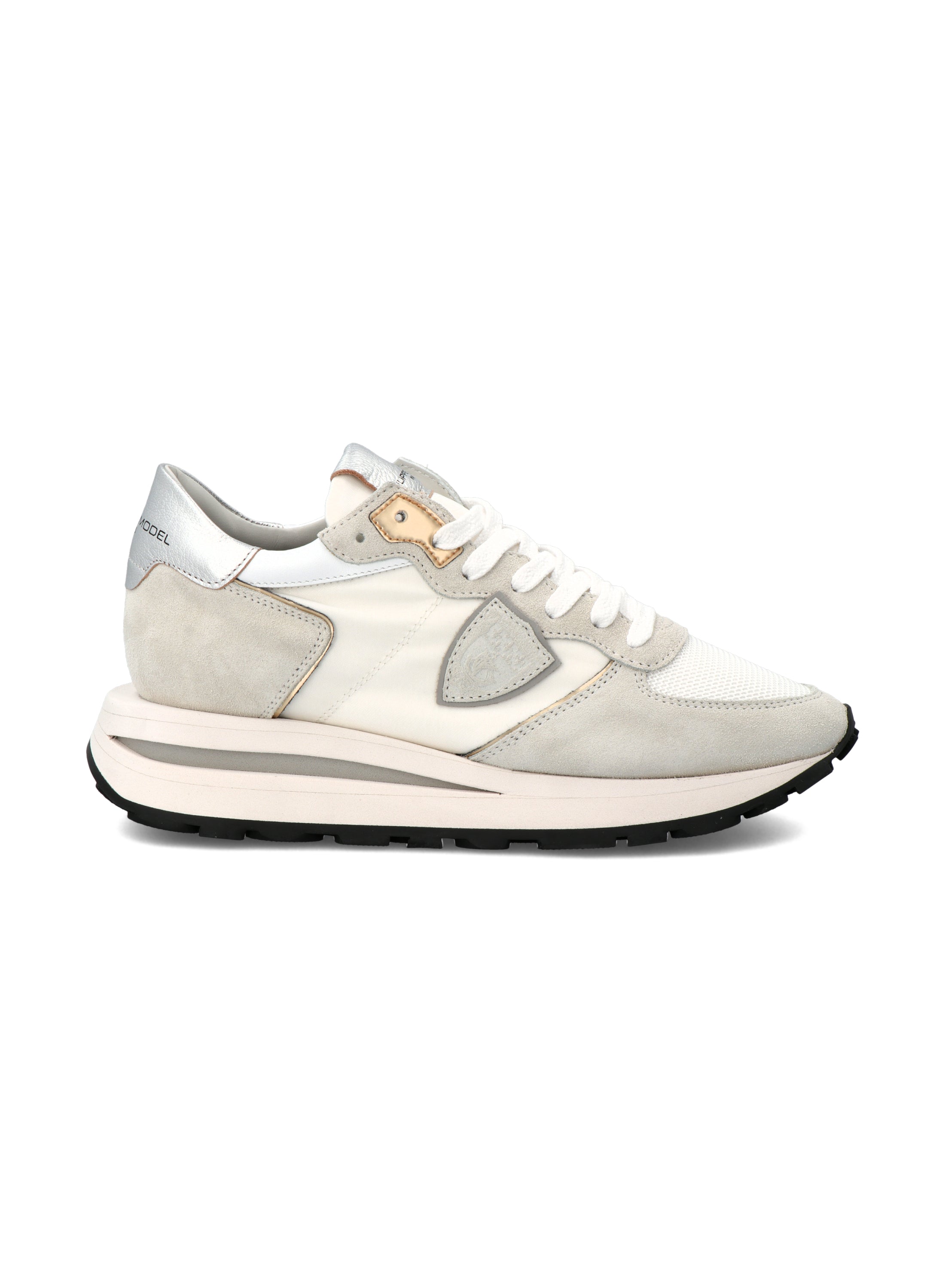 Elevate your style and performance with the Philippe Model Tropez Haute Low Woman sneaker. This retro-inspired design boasts Italian creativity and glamour with a technical fabric and suede upper, laminated details, and a hand-milled 3D insert on the ultra-light rubber sole. Be bold, be glamorous, be urban-active!