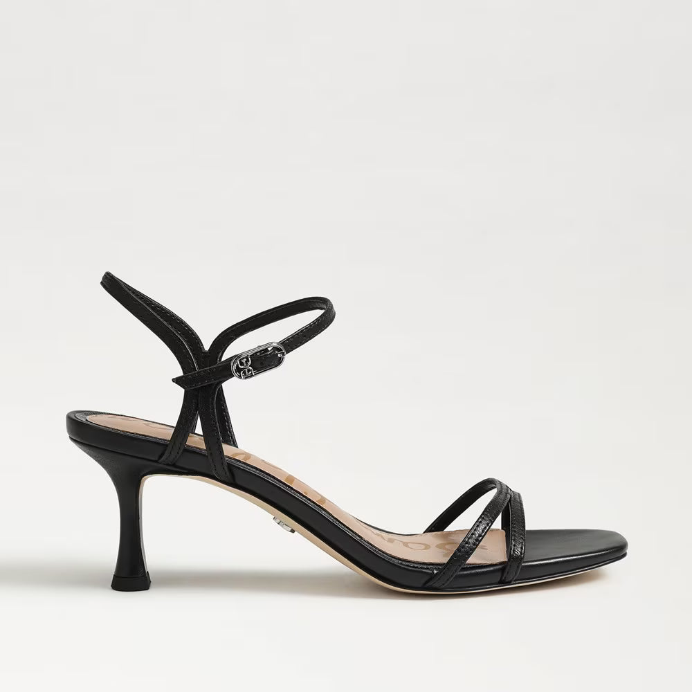 Step into effortless elegance with the Sam Edelman Presley Strappy Kitten Heel Sandal. This chic open-toe design features a comfortable 2.5-inch heel—the ideal height for all-day wear without sacrificing style. Crafted in luxurious black leather, the strappy silhouette flatters every foot while offering the versatility to transition seamlessly from day to night. Whether you're heading to the office or dancing until dawn, the Presley delivers the perfect balance of sophistication and comfort for any occasion.