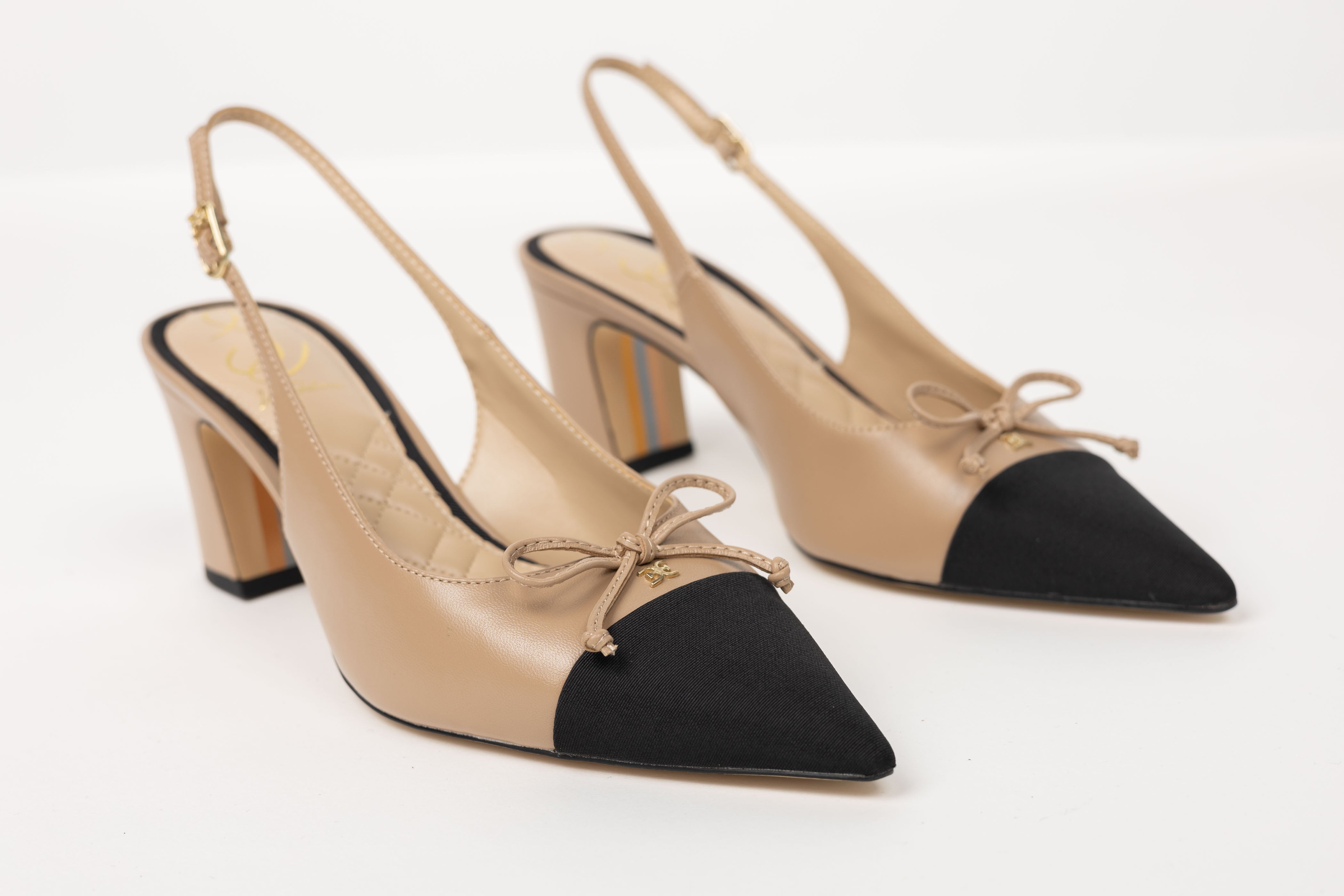 Elevate your style with Sam Edelman's Willette Slingbacks. With a cap toe and bowtie detail, these block heels are anything-but-basic. From brunch to the boardroom, make a statement with this versatile and stylish shoe.