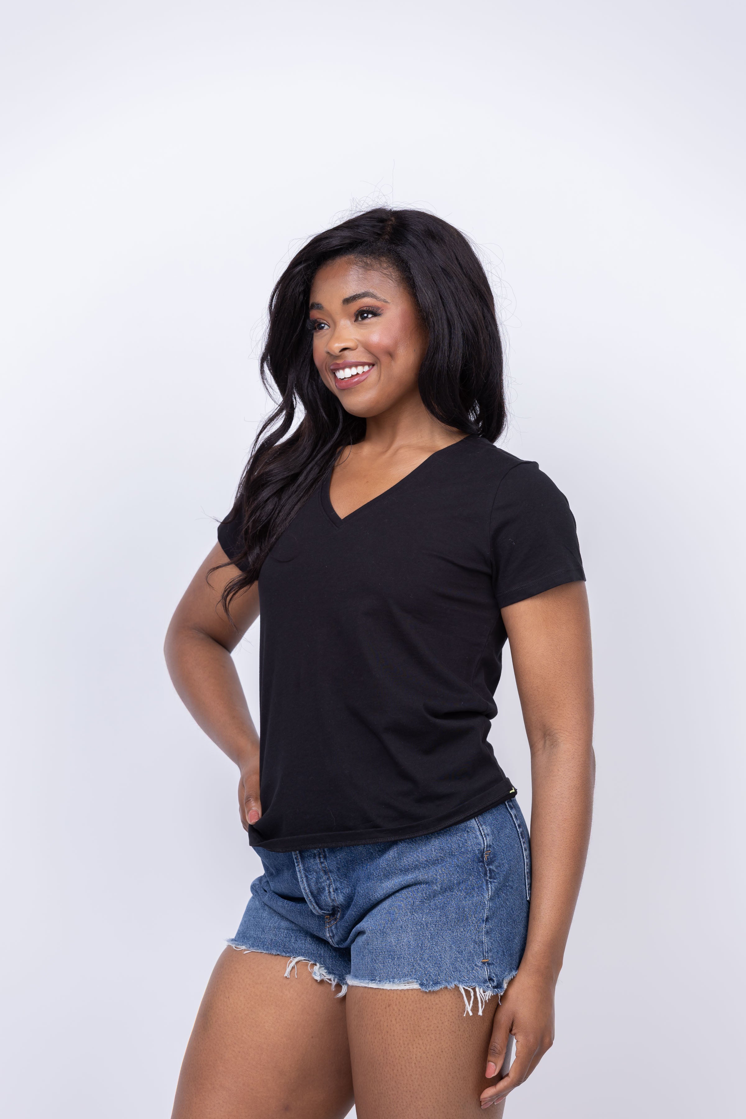 Introducing a timeless wardrobe staple - the Lilla P Short Sleeve V-Neck in Black. Made with soft wash jersey, it skims the body for a comfortable yet refined fit. A must-have, versatile piece that pairs effortlessly with any outfit. Reach for it time and time again for an effortless and chic look.