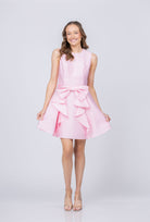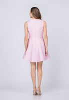 Make a statement in the Shoshanna Gabby mini dress. This charming design features an elegant pebbled jacquard fabric that catches the light beautifully. A fitted bodice contrasts with a flared skirt adorned with cascading ruffles, while a delicate bow detail cinches the waist for added femininity. Practical side seam pockets offer functionality without compromising style, and full lining ensures comfort and coverage. The peony hue brings warmth and sophistication to any occasion. Finished with a discreet center back invisible zip, this dress delivers playful elegance with refined details—perfect for elevating your everyday look or standing out at special events.