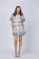 Shoshanna Lima Dress in Flax/Powder Blue