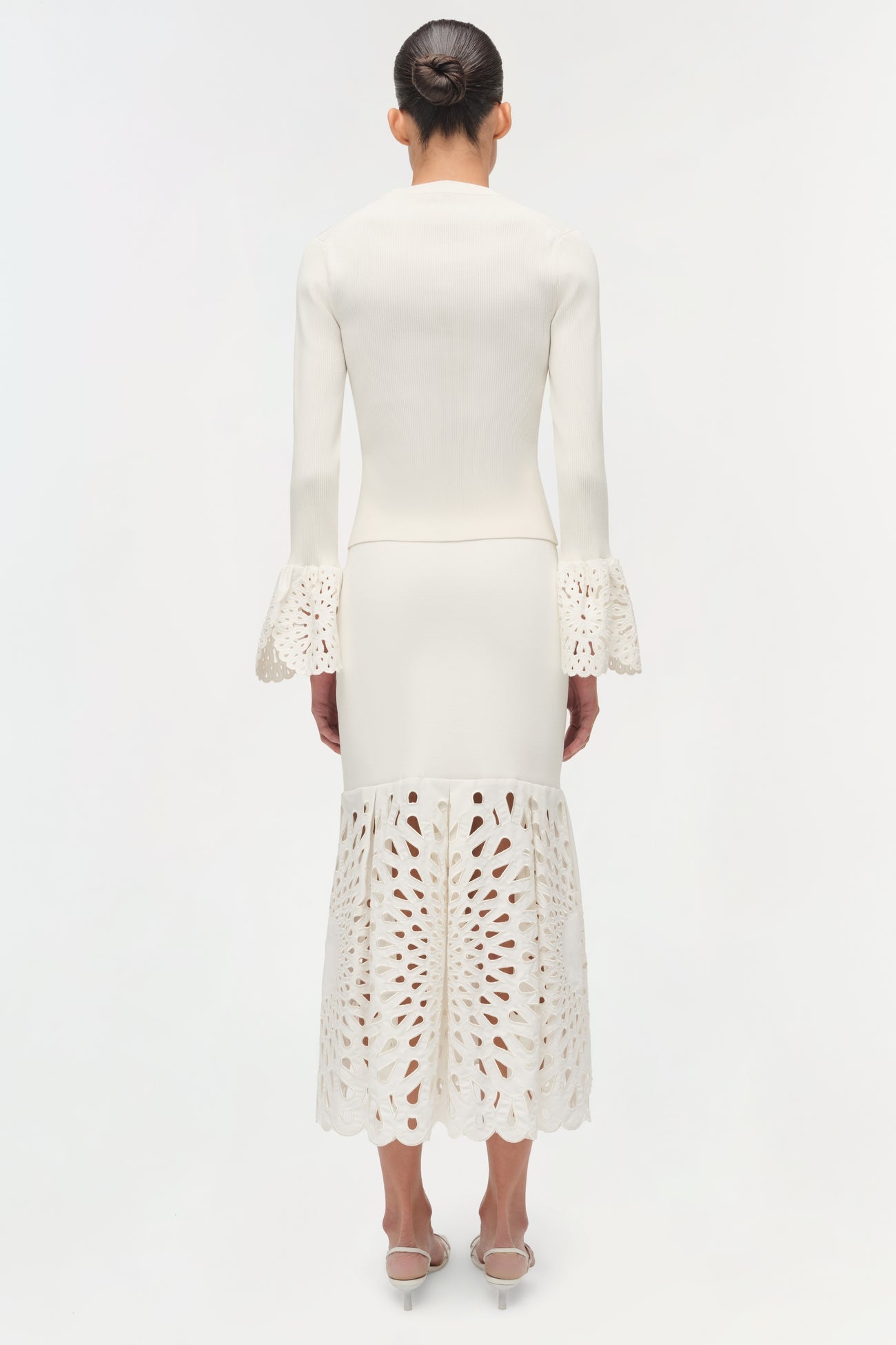Crafted from finely knitted fabric in a compact weave, this Simkhai top delivers understated sophistication. The streamlined silhouette hugs the body with precision, while delicate eyelet embroidery adorns the sleeves, introducing an airy, textured contrast. It's the kind of piece that elevates any wardrobe through quiet elegance—refined details without excess. Perfect for layering or wearing solo, this white long sleeve top bridges the gap between minimalist design and refined craftsmanship.