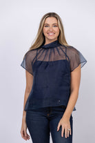 Elevate your wardrobe with the Simkhai Feyre Short Sleeve Top in Midnight. Featuring a sleek, clean silhouette enhanced by a sheer overlay, this top adds subtle texture and visual depth to any outfit. Perfect for both casual and dressy occasions, its sophisticated design effortlessly blends comfort with a modern edge. Make a statement with a versatile piece that complements your style with understated elegance.