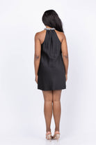 Elevate your evening wardrobe with the Simkhai Hadleigh Mini Dress in Black. Its luxurious satin fabric flows into a clean A-line silhouette that flatters while keeping the focus on the dazzling jewel-encrusted neckline. Hand-applied stones and metallic accents create a captivating collar effect, making every detail shine. This dress combines sophisticated simplicity with artisan craftsmanship to ensure you stand out at any event.