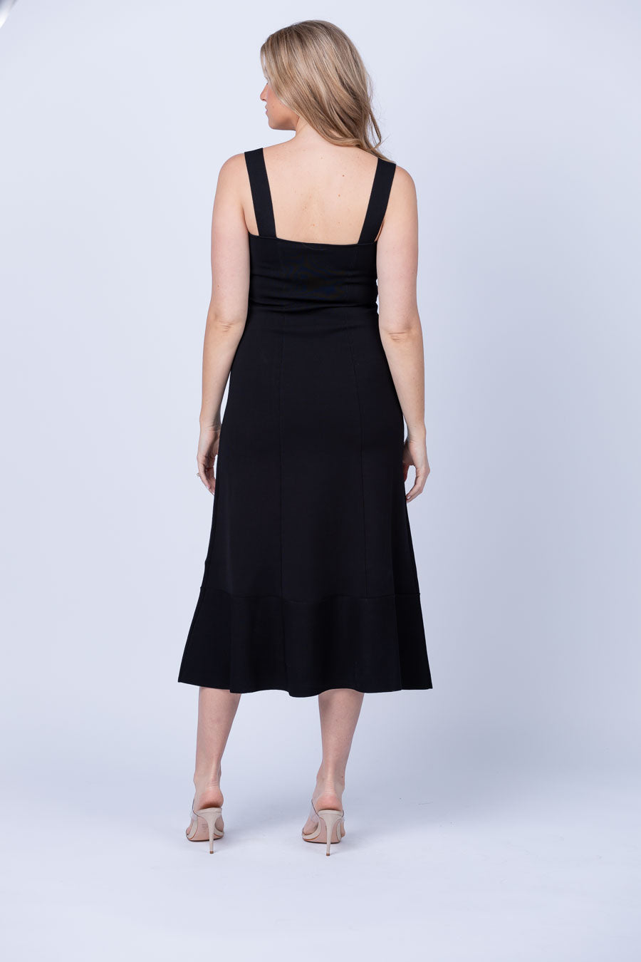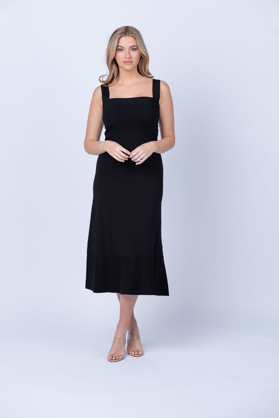 Capture timeless elegance with the Simkhai Ingrid Dress. Cut in a sleek midi length with a flattering square neckline, this dress is perfect for any occasion. Crafted with a compact rib blend, its fit-and-flare silhouette flatters the bodice while providing breathable comfort. Add a classic touch to your wardrobe with this must-have piece.