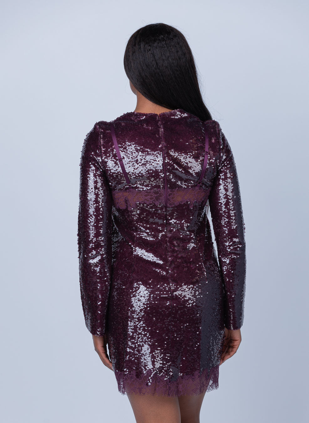 Let your style shine with the Simkhai Mako Mini Dress. This gorgeous and unique dress features a sequined exterior embellished with a lace bralette inset and hem, giving you the perfect blend of glamour and grace. The long sleeves and crew neckline give the dress a classic silhouette. Feel confident and beautiful in this stunning dress - perfect for any occasion!