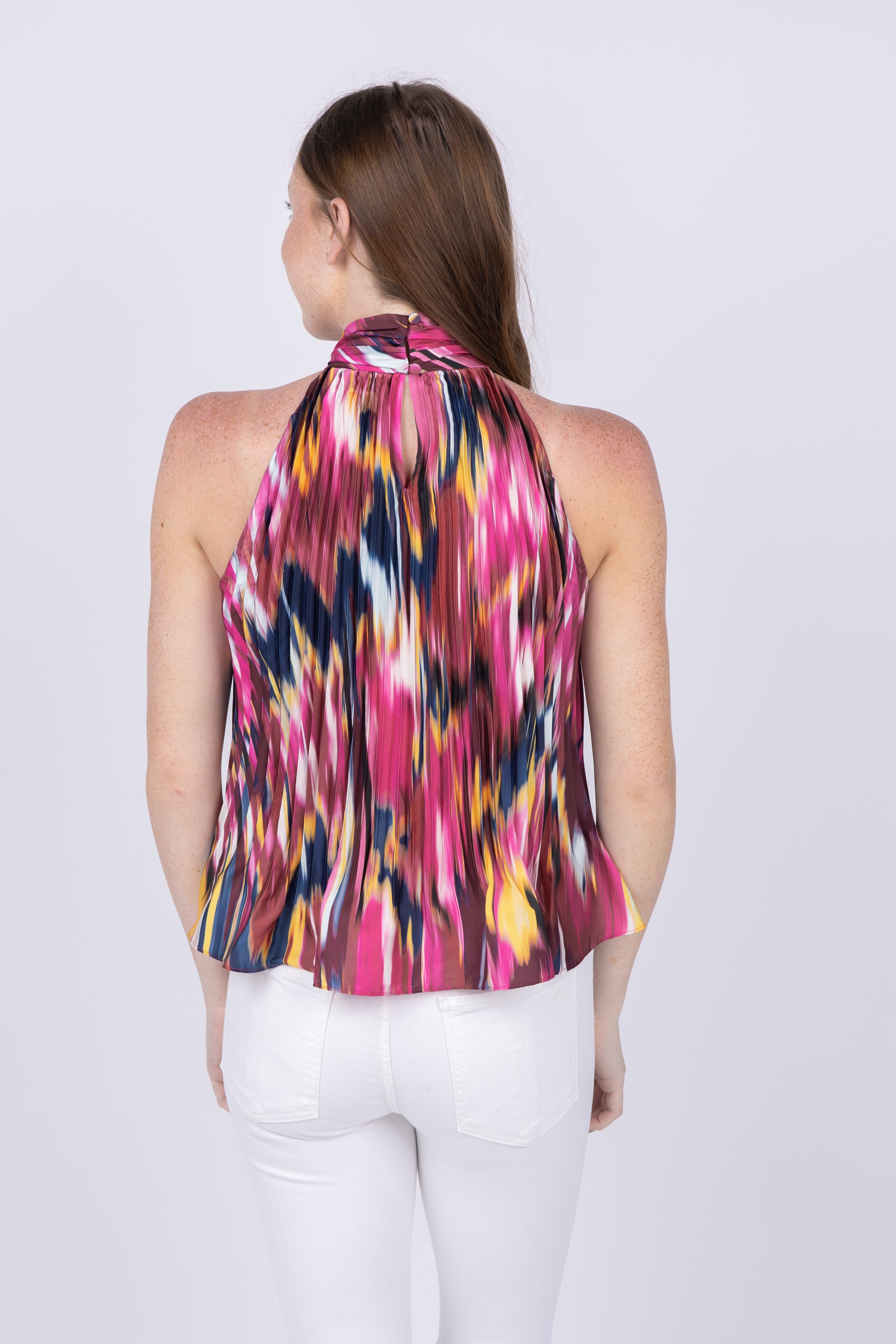 Make a statement in the Simkhai Yasenia Top. This beautiful piece features a striking abstract tapestry in vibrant colors, perfect for dressing up or down. Flowy and lightweight, it will add a unique flair to your wardrobe and elevate your style. Experience the delightful versatility of this one-of-a-kind top!