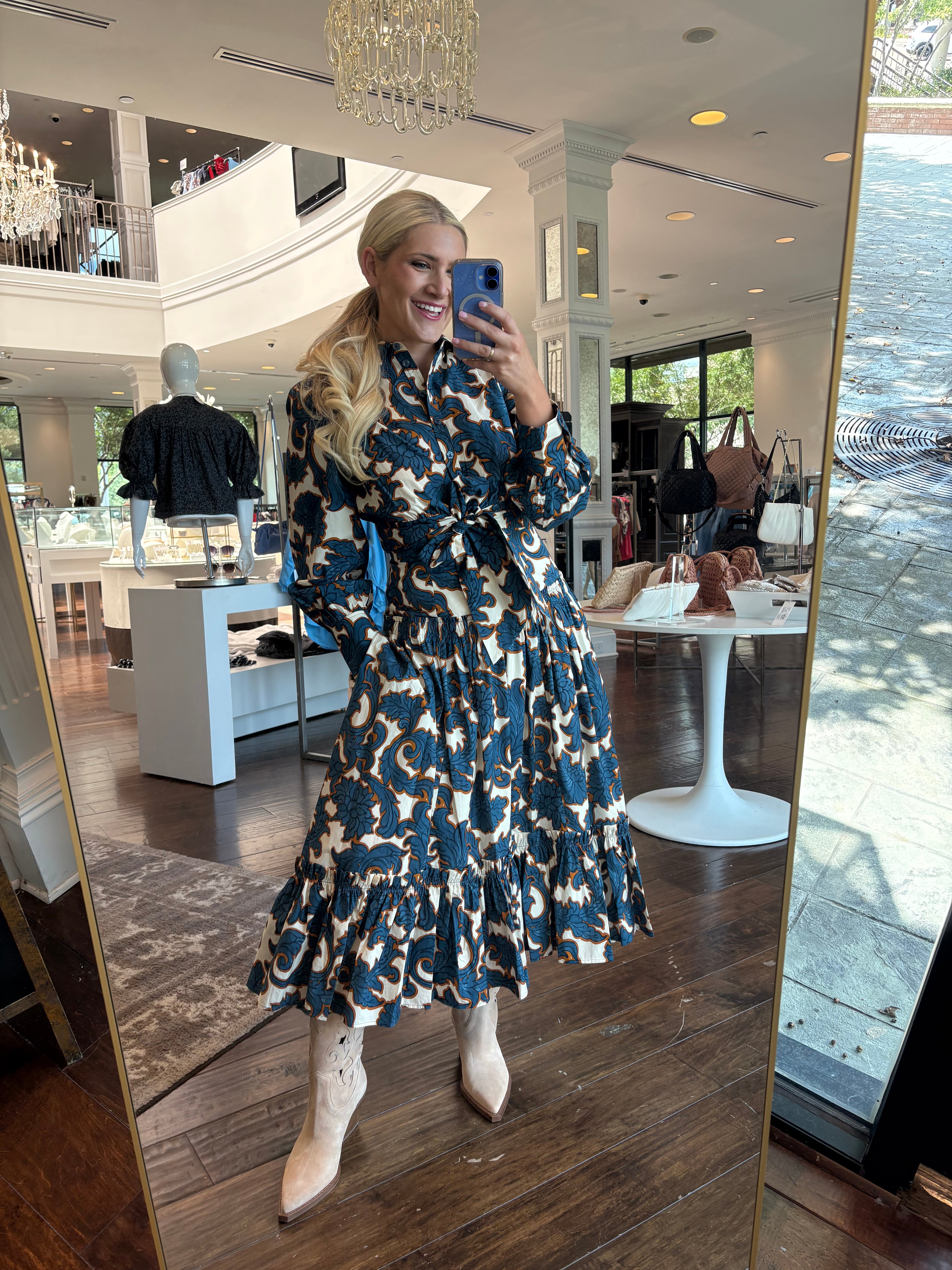 The Cara Cara Tisbury Skirt in Mystic Flora Blue offers a perfect blend of bohemian flair and refined style. Its high-low, tiered ruffle design adds just the right amount of volume for a standout look that’s still comfortable for everyday wear. Featuring an A-line silhouette with a wide yoke at the high-rise waist and a concealed back zip, this skirt delivers a flattering fit and effortless ease. The allover floral print brings a fresh, playful vibe, making it easy to dress up or down—knot a tee or pair with your favorite blouse for versatile charm.