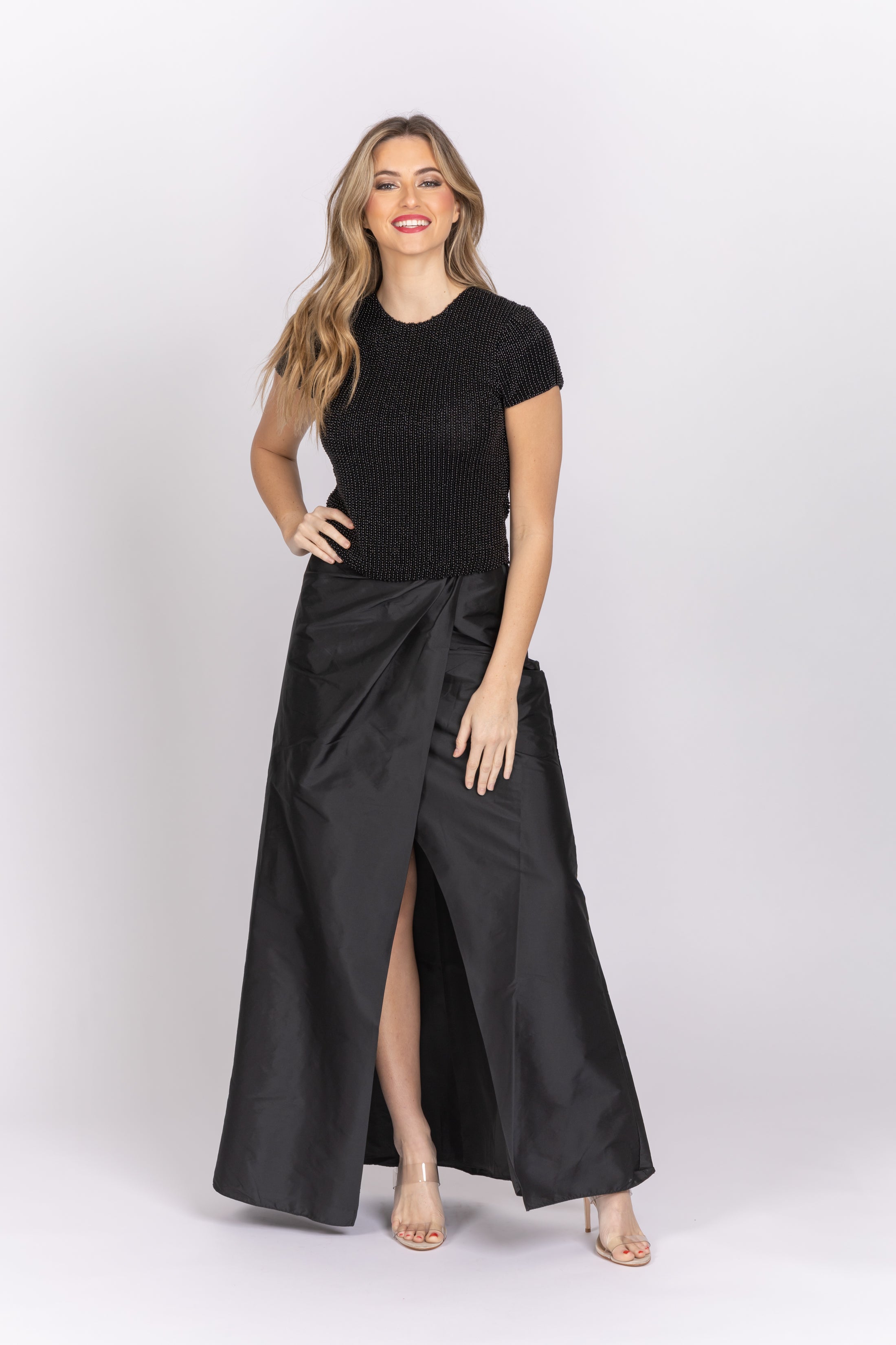 Faux surplice wrap skirt is a great evening alternative to Emily Shalant's full ball gown skirts for those who want a more svelte look, but still ready for that elegant event.