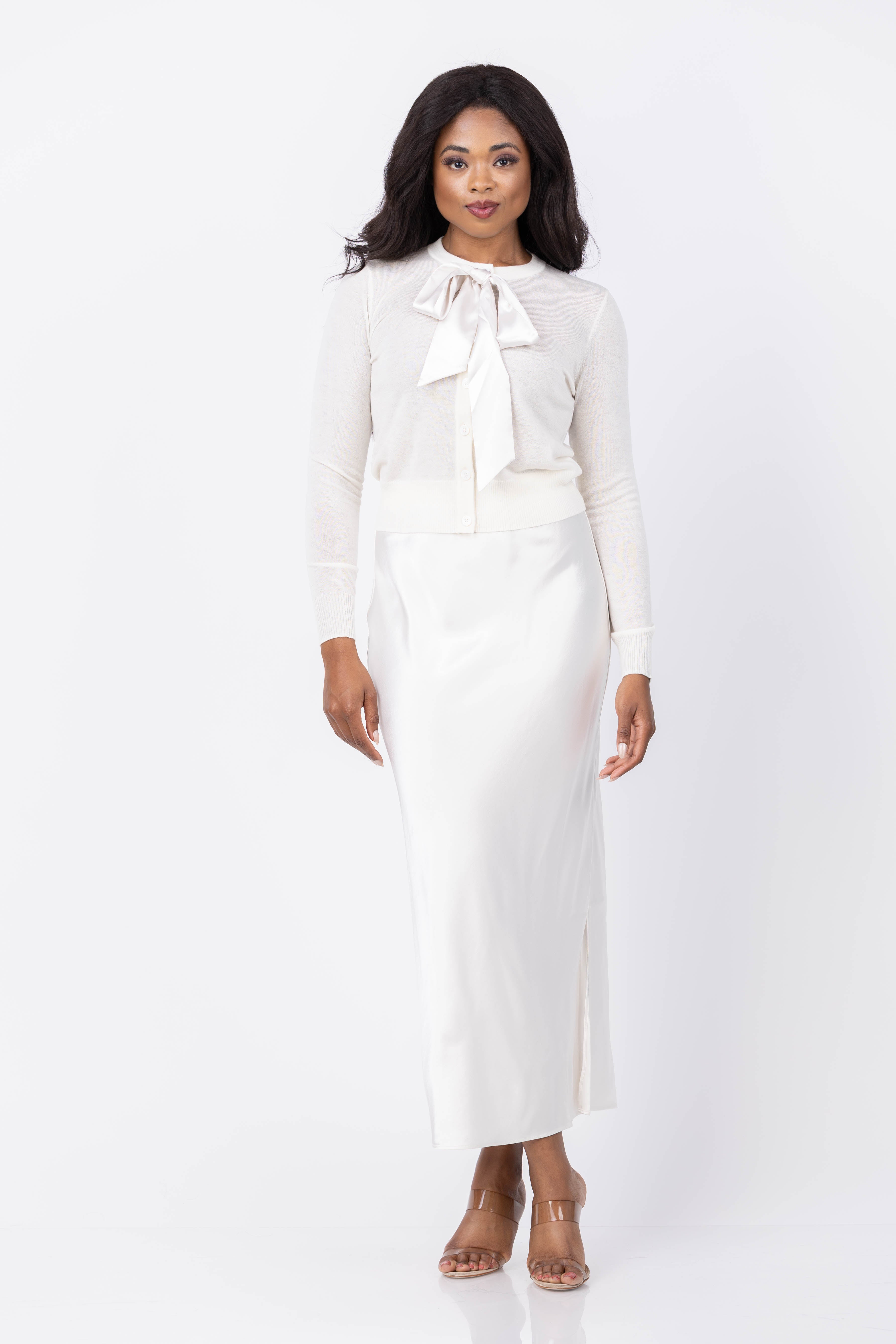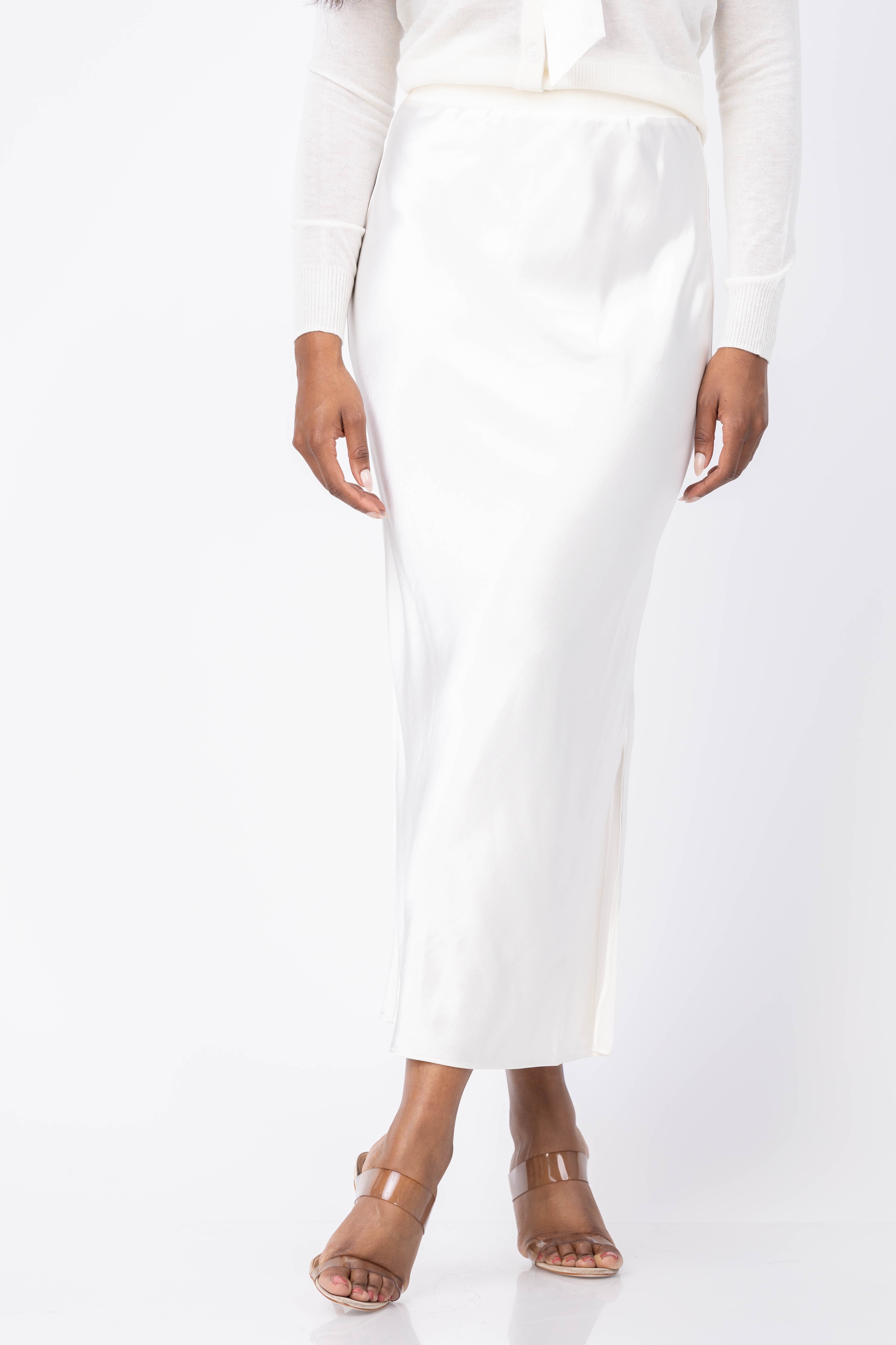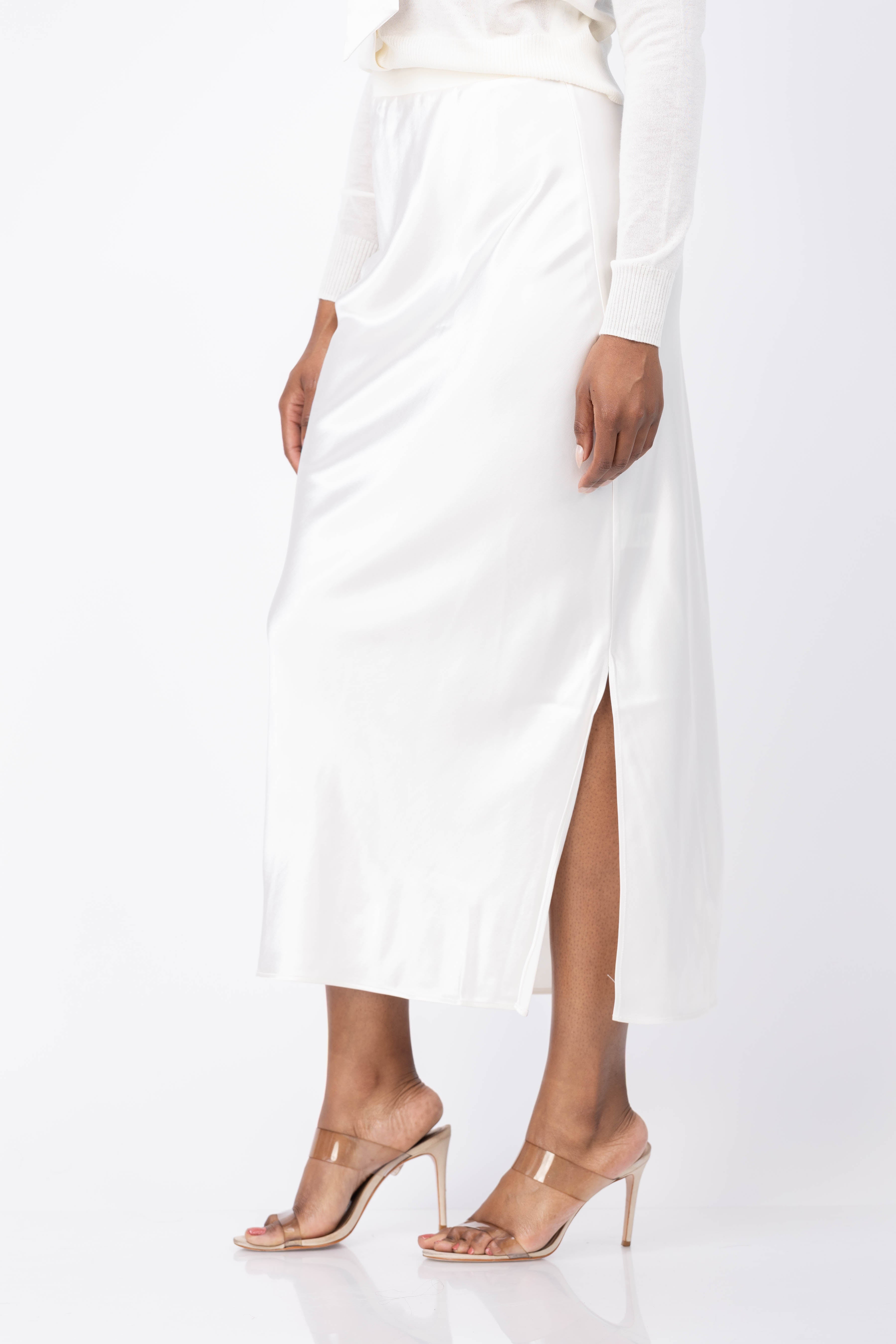 The Josie Long Skirt in Ivory is your go-to for effortless style all year round. Its 36.5" bias-cut midi length creates a flattering, billowy silhouette that moves gracefully with you. The high exposed waistband adds a modern touch while ensuring a comfortable, easy pull-on fit. A subtle side slit offers just the right amount of movement and allure, making it perfect for both casual and dressy occasions. Embrace comfort and elegance in one versatile piece designed to enhance your wardrobe seamlessly.