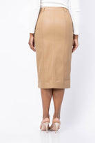 Karina Grimaldi Mona Vegan Leather Midi Skirt in Chestnut