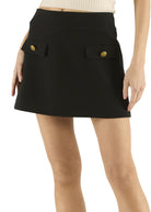 Elevate your wardrobe with the Ramy Brook Douglas Skirt in Black, featuring glinting etched hardware that adds a touch of sophistication. This stretch-enhanced skirt extends to a flattering leggy length, offering both style and comfort. It includes a discreet back-zip closure for a seamless look, decorative button pocket flaps for subtle detail, and a smooth lining to ensure a polished finish all day long. Perfect for dressing up or down, this skirt combines elegance with effortless wearability.