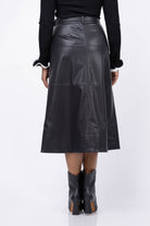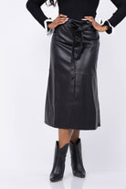 The Tanya Taylor Hudley Skirt in Black offers a refined silhouette with tiered seaming along its slimmer A-line shape. Featuring a high waist and a self-tie belt, it is designed to highlight perfect proportions while adding a stylish touch. This skirt combines elegance and modernity for a polished look.