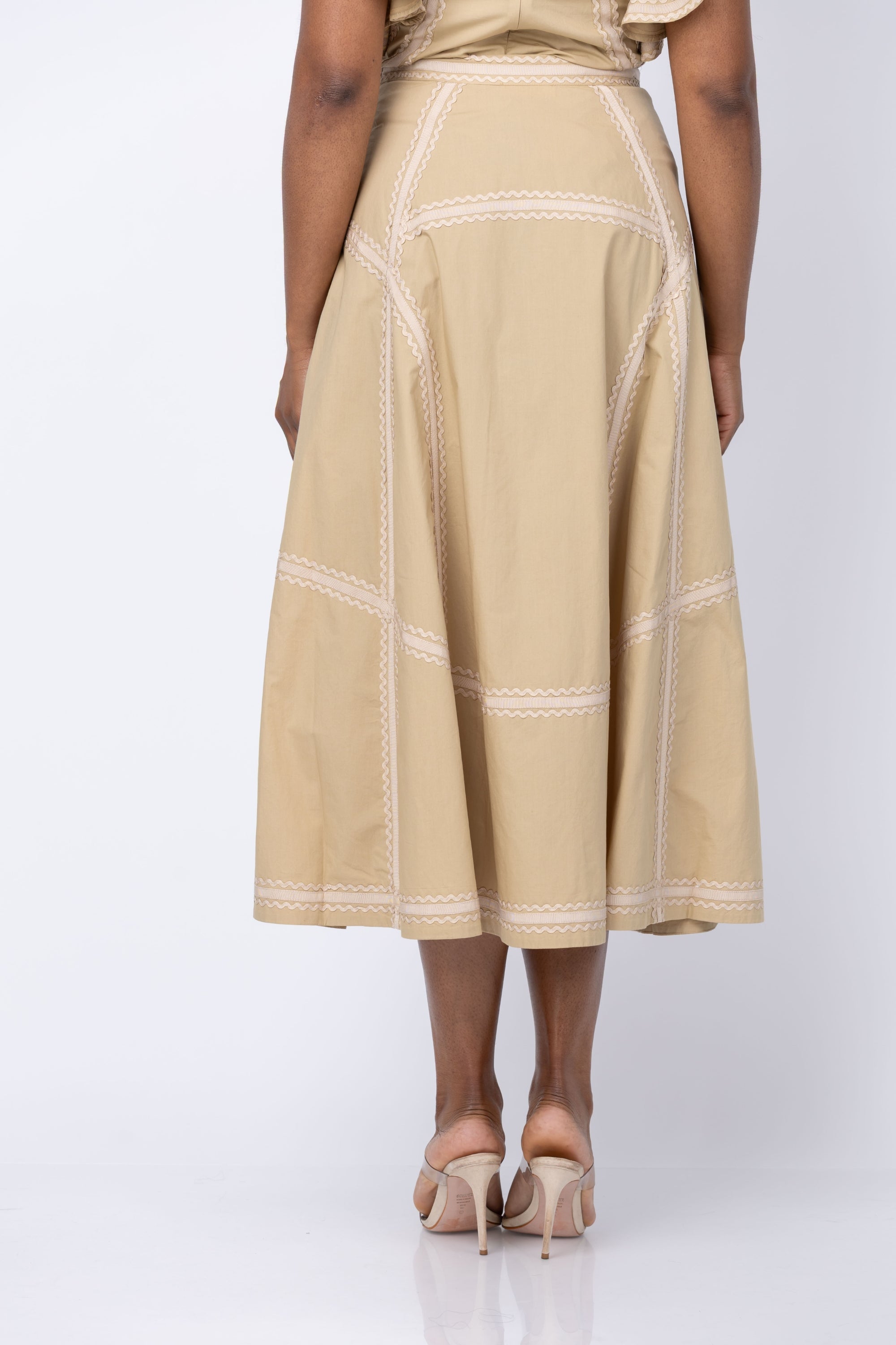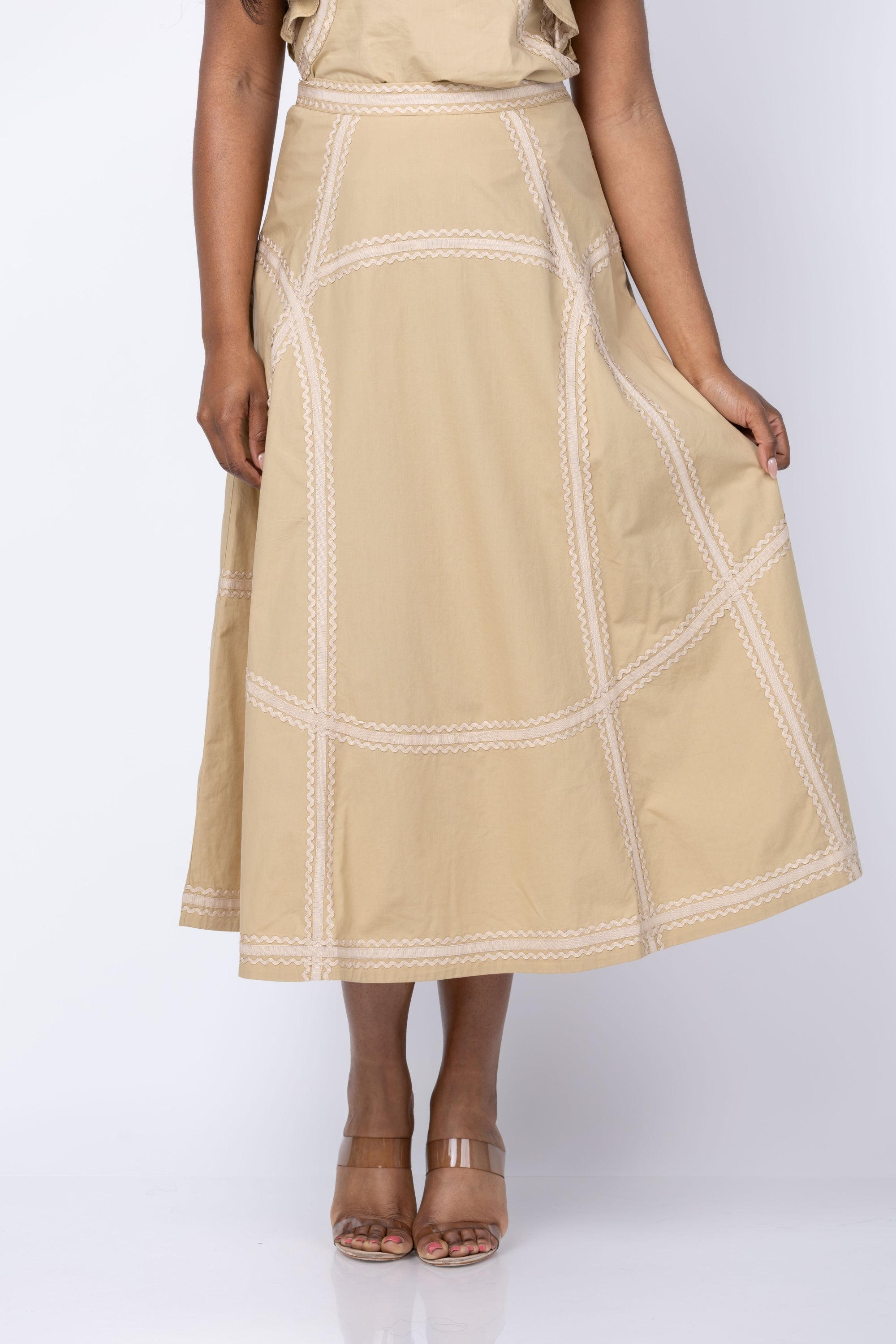 Ulla Johnson Norah A-Line Midi Skirt in Sand