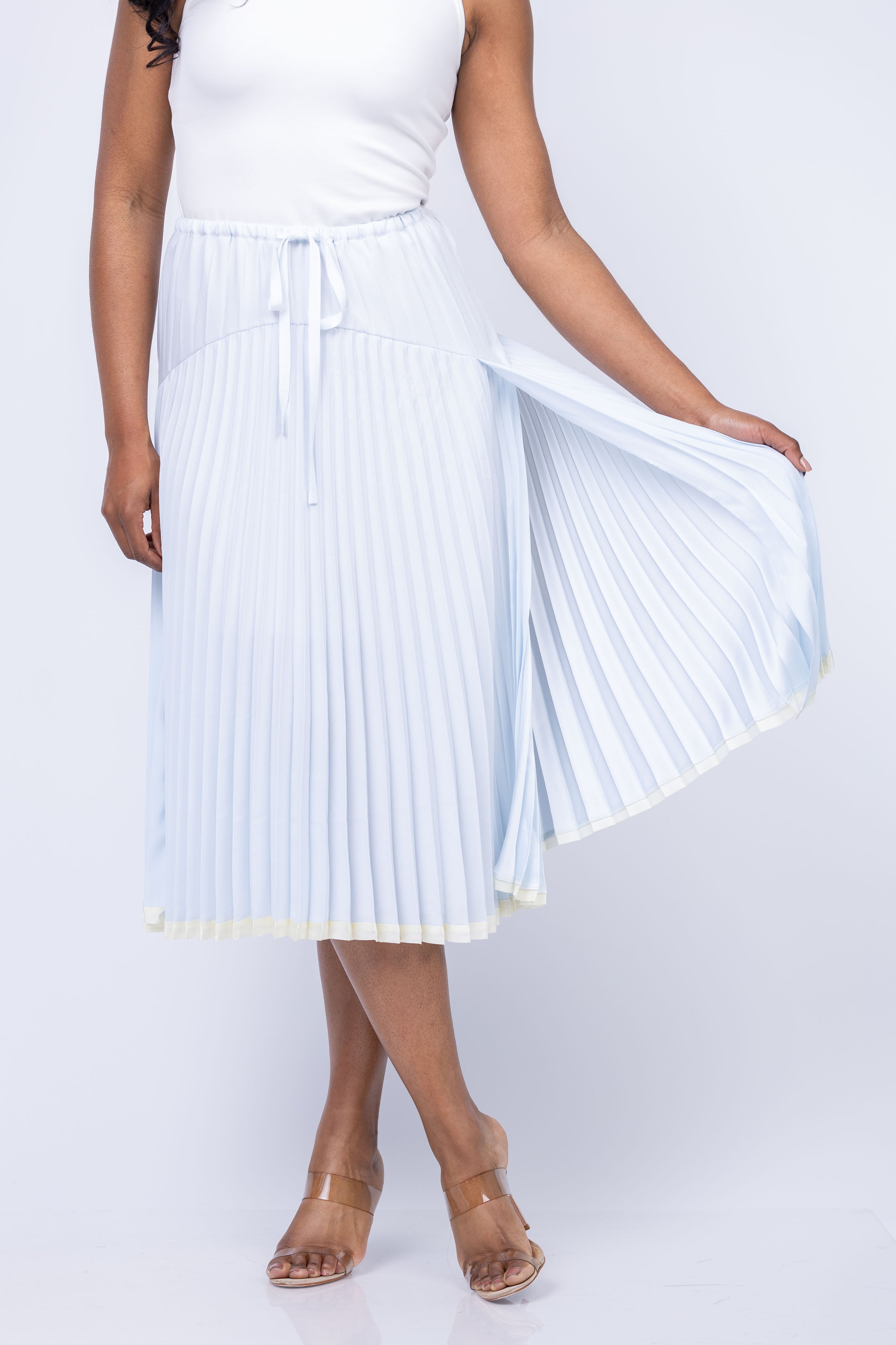 Vince Pleated Tiered Skirt in Sky Mist
