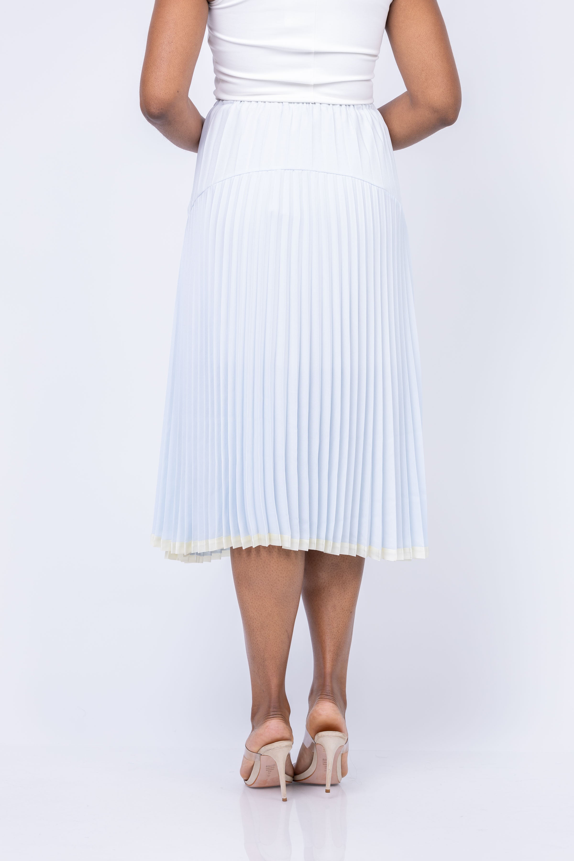 Indulge in the mesmerizing movement and dimension of the Vince Pleated Tiered Skirt in Sky Mist. With two types of pleating and contrast-colored tipping at the hem, this satin pull-on skirt is both chic and effortless. Elevate your style with this stunning piece.