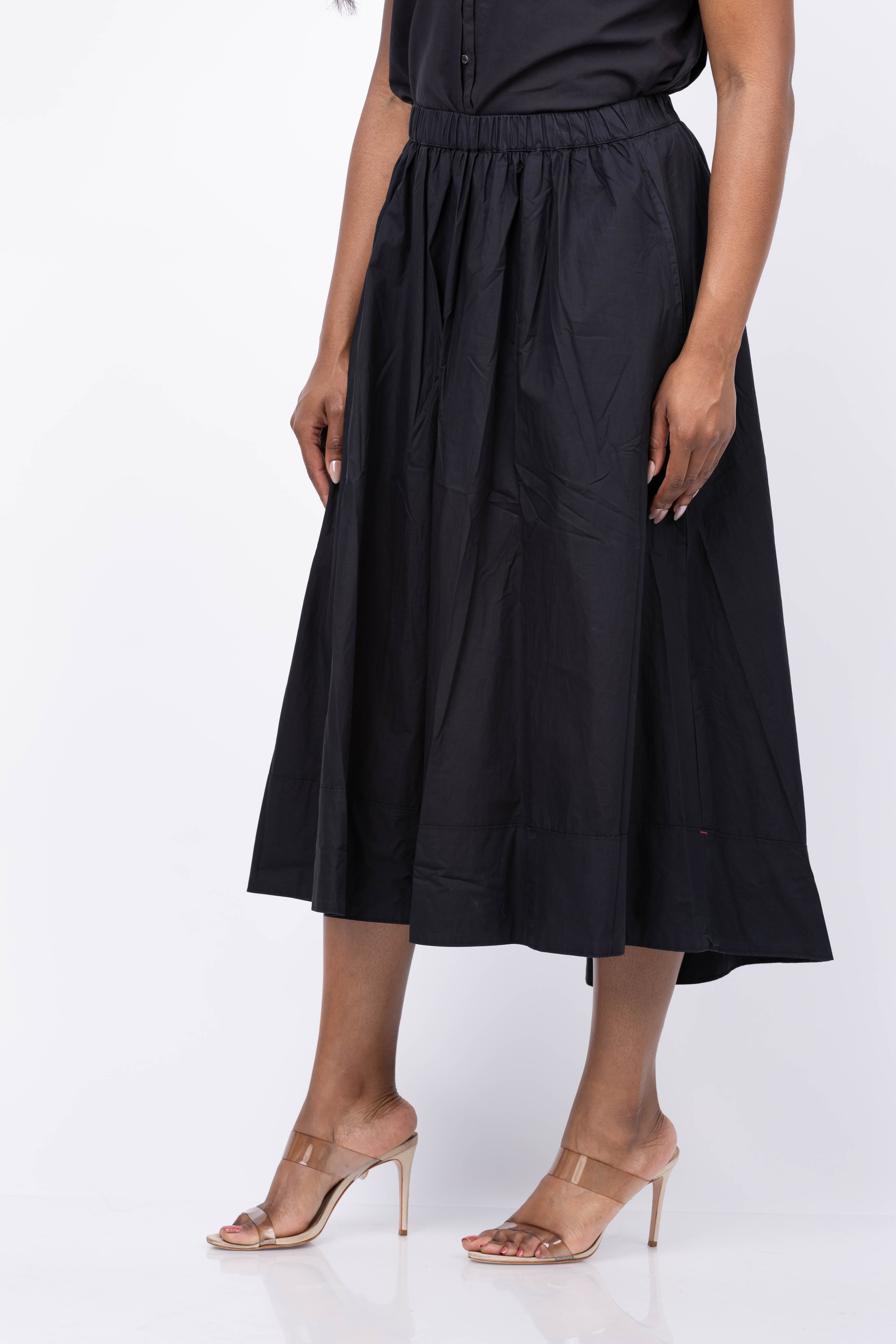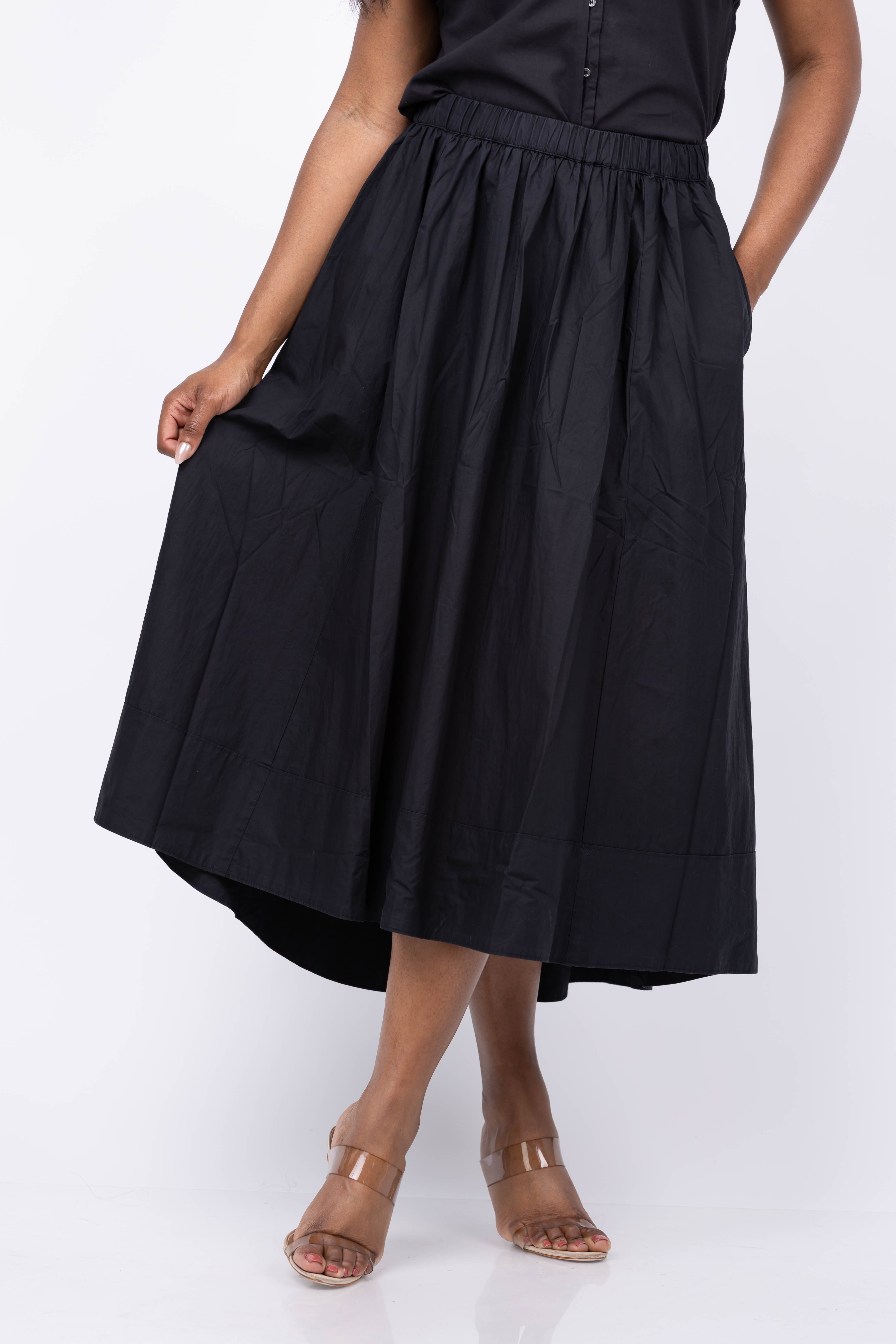 Experience effortless elegance with the XiRENA Gwynn Skirt in Black. Crafted from crisp paper poplin, this skirt offers a refined texture and comfortable fit with its elasticized waist. The flattering pleated design, convenient side seam pockets, and stylish high-low hem make it perfect for both casual and dressy occasions. Elevate your wardrobe with a versatile piece that combines sophistication and ease.