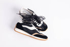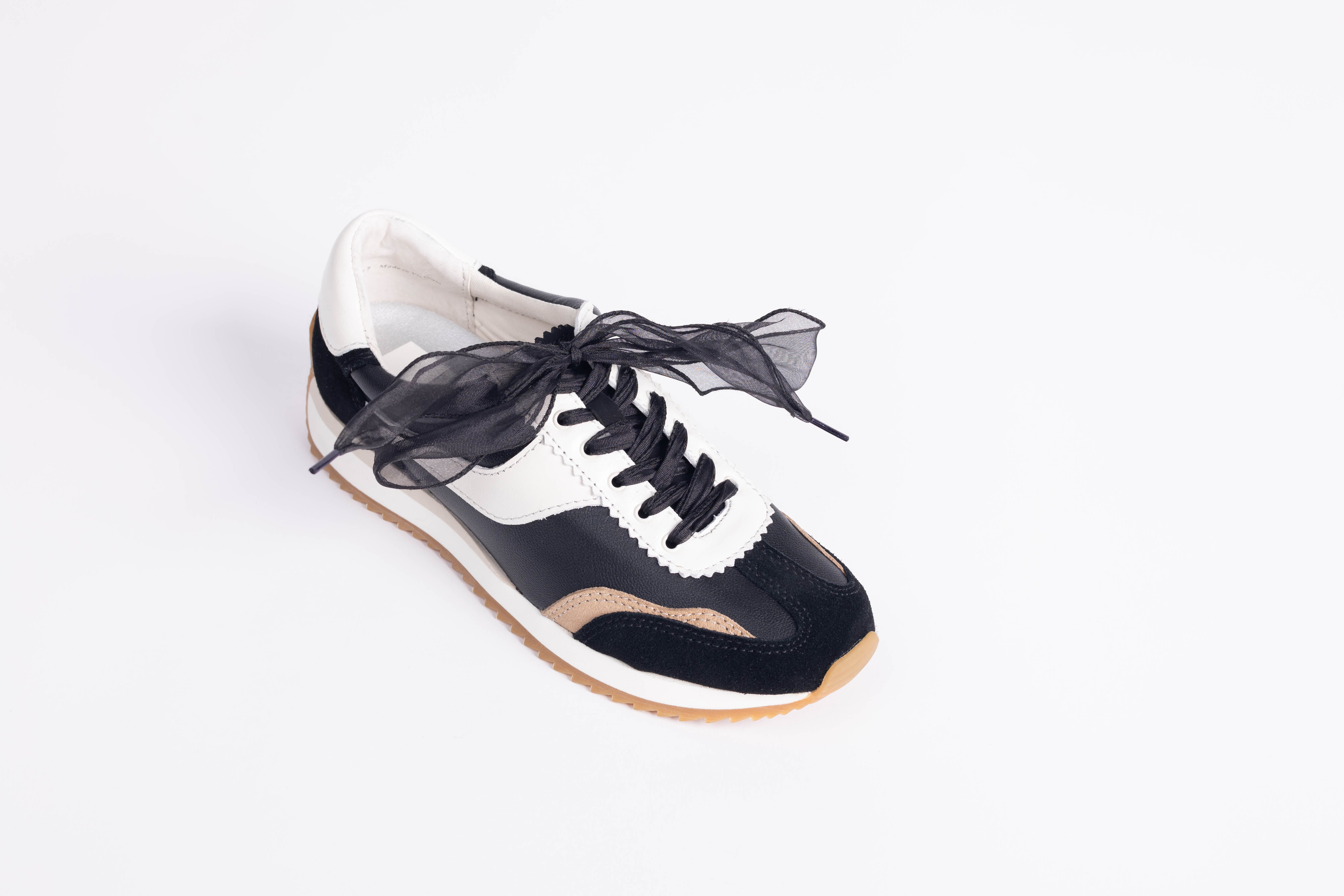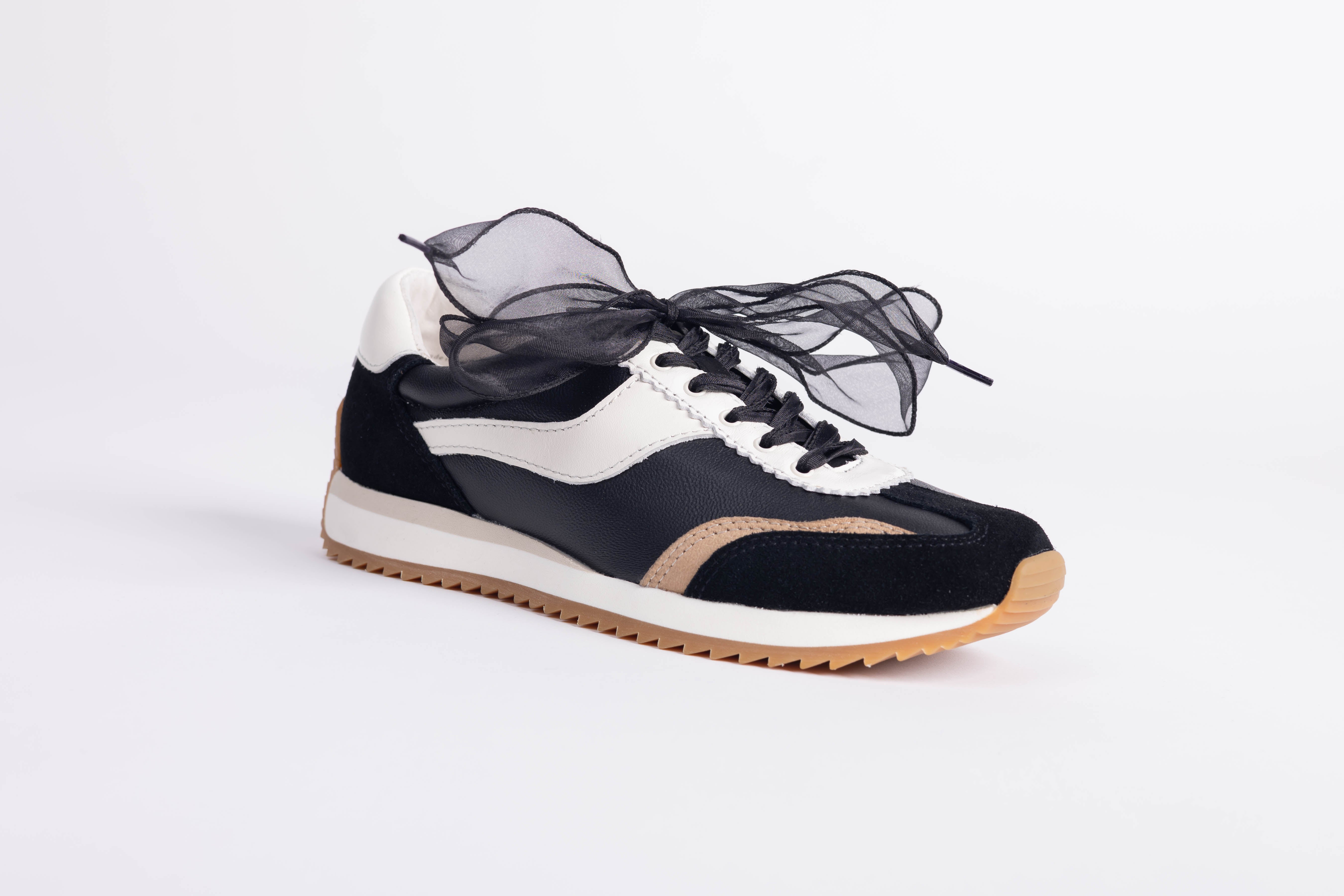Experience timeless style and unmatched comfort with the Dolce Vita B.Ntcd in Black Multi Leather. Crafted from a sophisticated blend of suede and leather, these classic sneakers feature unique ribbon laces that add a distinctive touch, along with regular laces for versatile wear. Perfect for elevating any outfit while keeping your feet comfortable all day long.