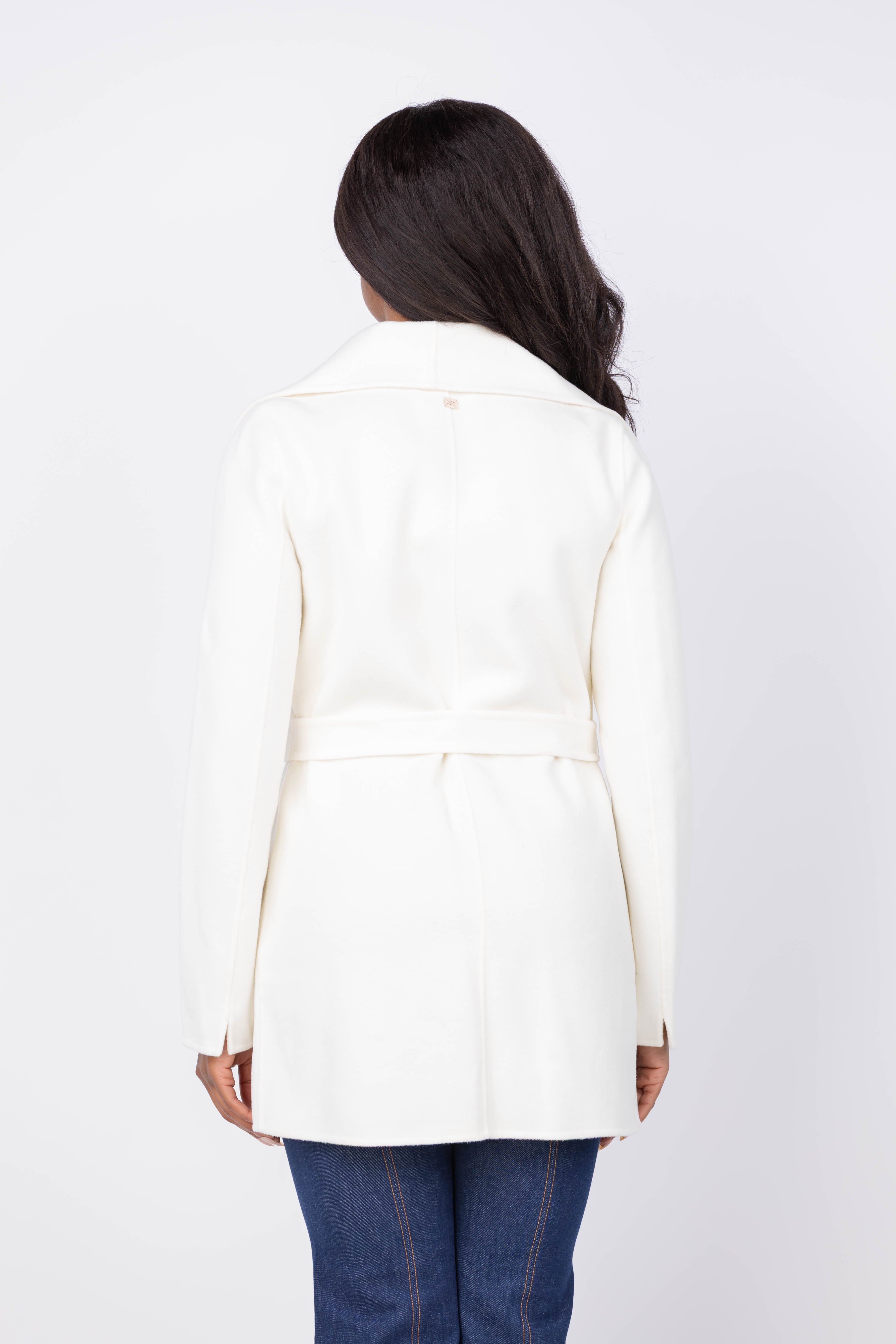 SOIA & KYO Bridgette-U Double Face Wool Wrap Coat in Powder