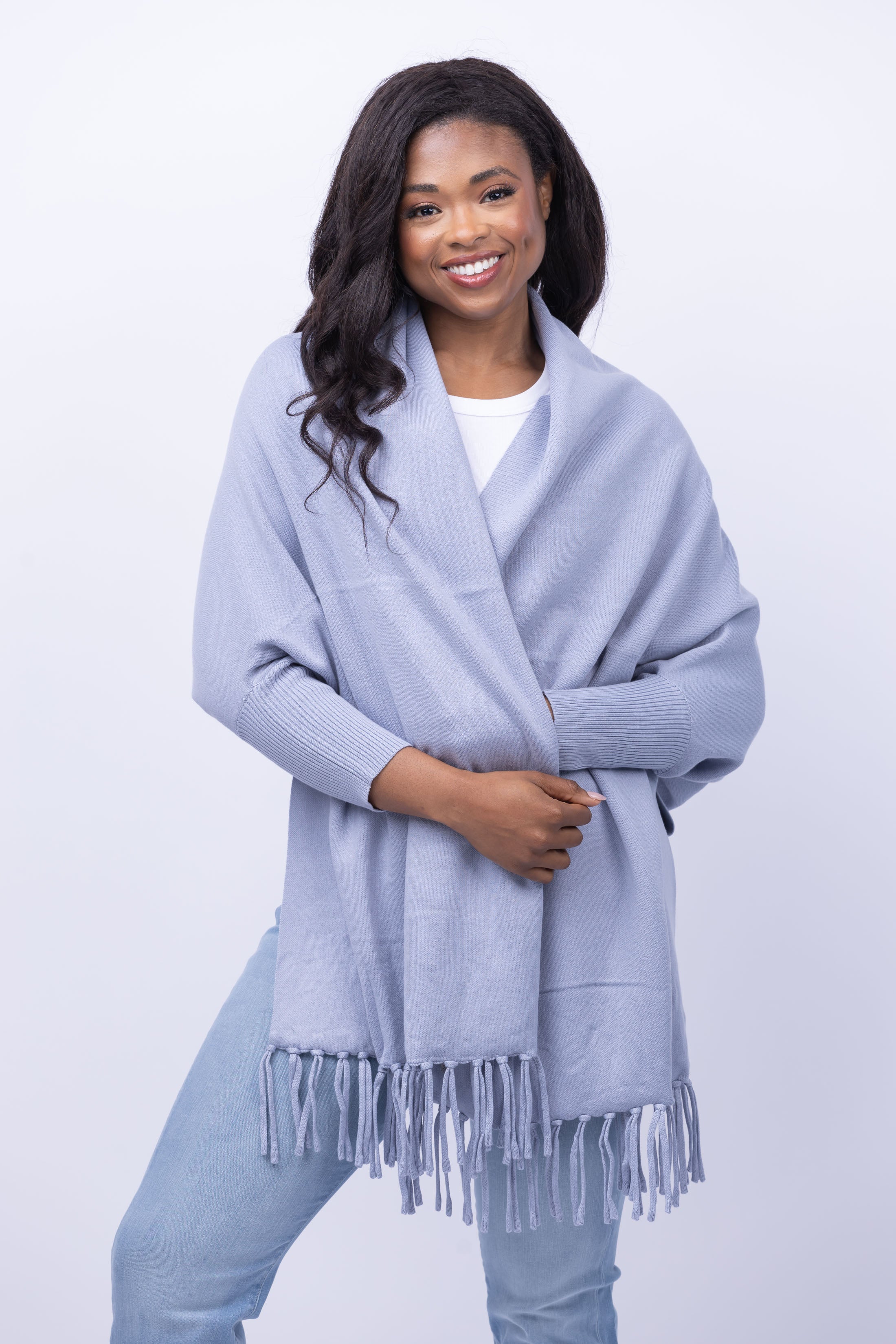 Introducing the SOIA & KYO Miku-S Scarfigan! Say goodbye to the hassle of layering with this all-in-one cardigan and scarf combo. Made for effortless style, it features cinched rib-knit cuffs and chic fringe details. Simplify your wardrobe and elevate your look with this must-have piece.