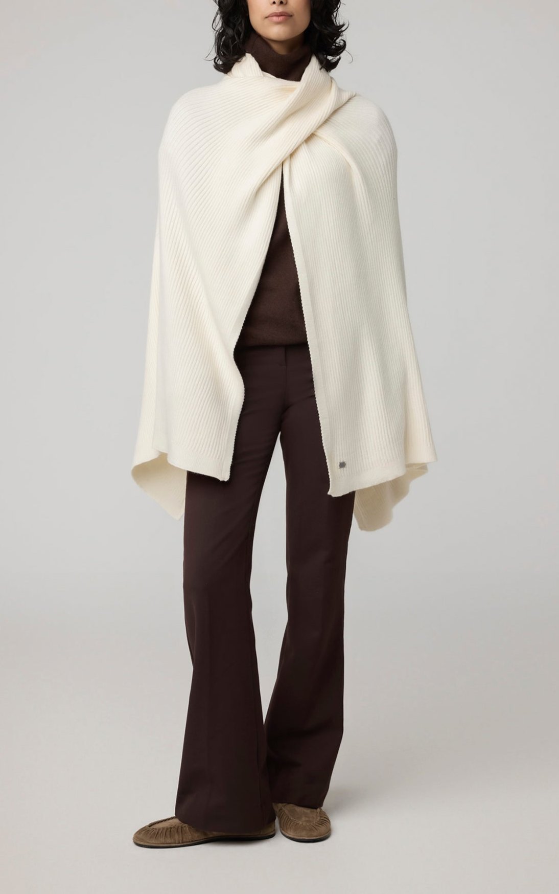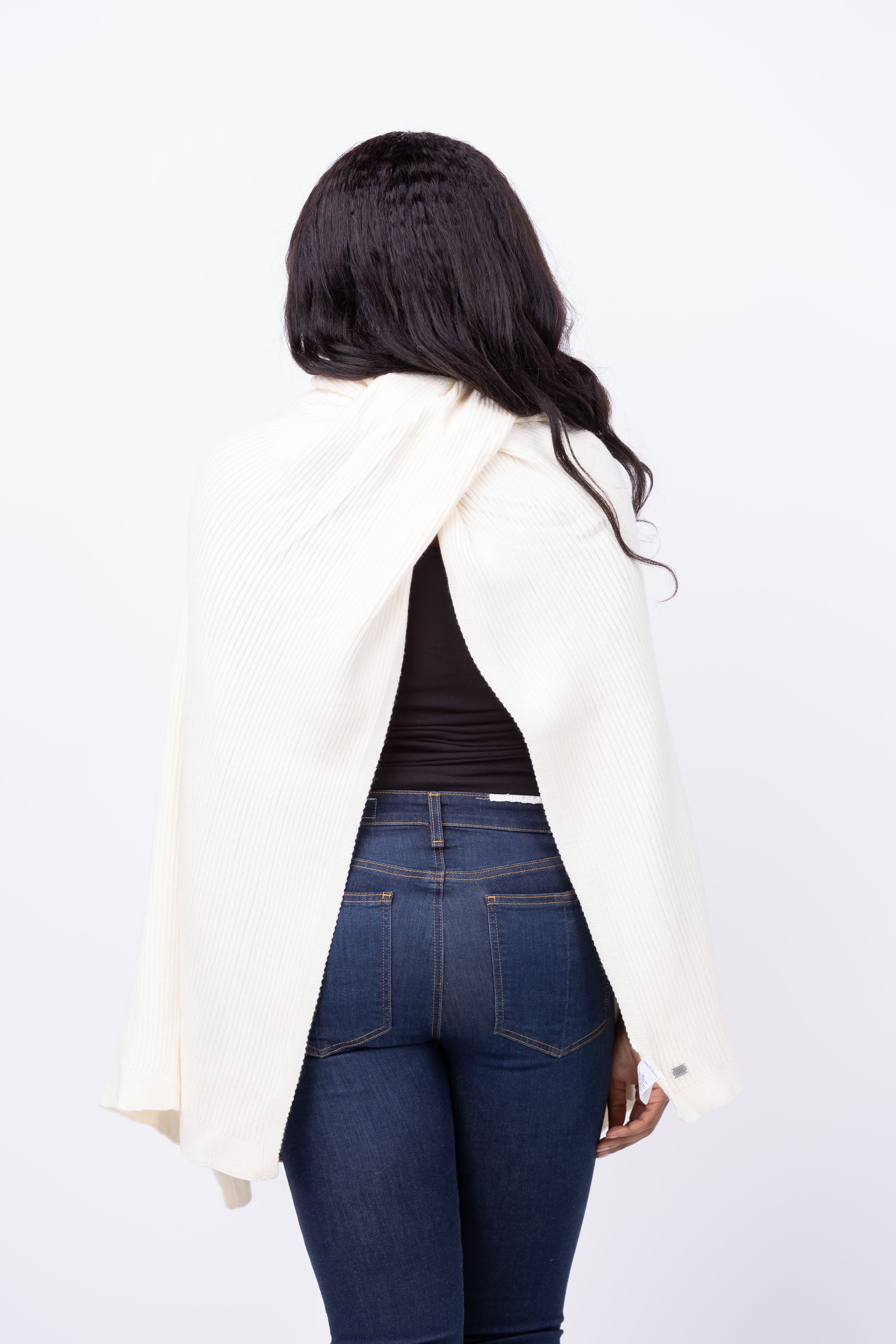 Elevate your style with the REBEECA scarf cape by SOIA & KYO. This oversized rib-knit piece not only adds a striking touch to any outfit, but also keeps you cozy with its lightweight, ribbed fabric. Its elegant cross-over design allows for effortless movement. A must-have for a fashionable and functional wardrobe!