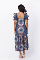 Ethically handcrafted in India from 100% GOTS-certified organic poplin cotton, the Cleobella Jewel Ankle Dress blends sustainability with style. Its twisted bodice and smocked back with zipper ensure a flattering fit, while puff sleeves and a subtle high-low hem offer a romantic, dynamic silhouette. The vibrant Venezia Blue print adds an eye-catching element, making this dress perfect for effortlessly elegant looks that honor both craft and conscious fashion.