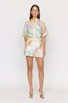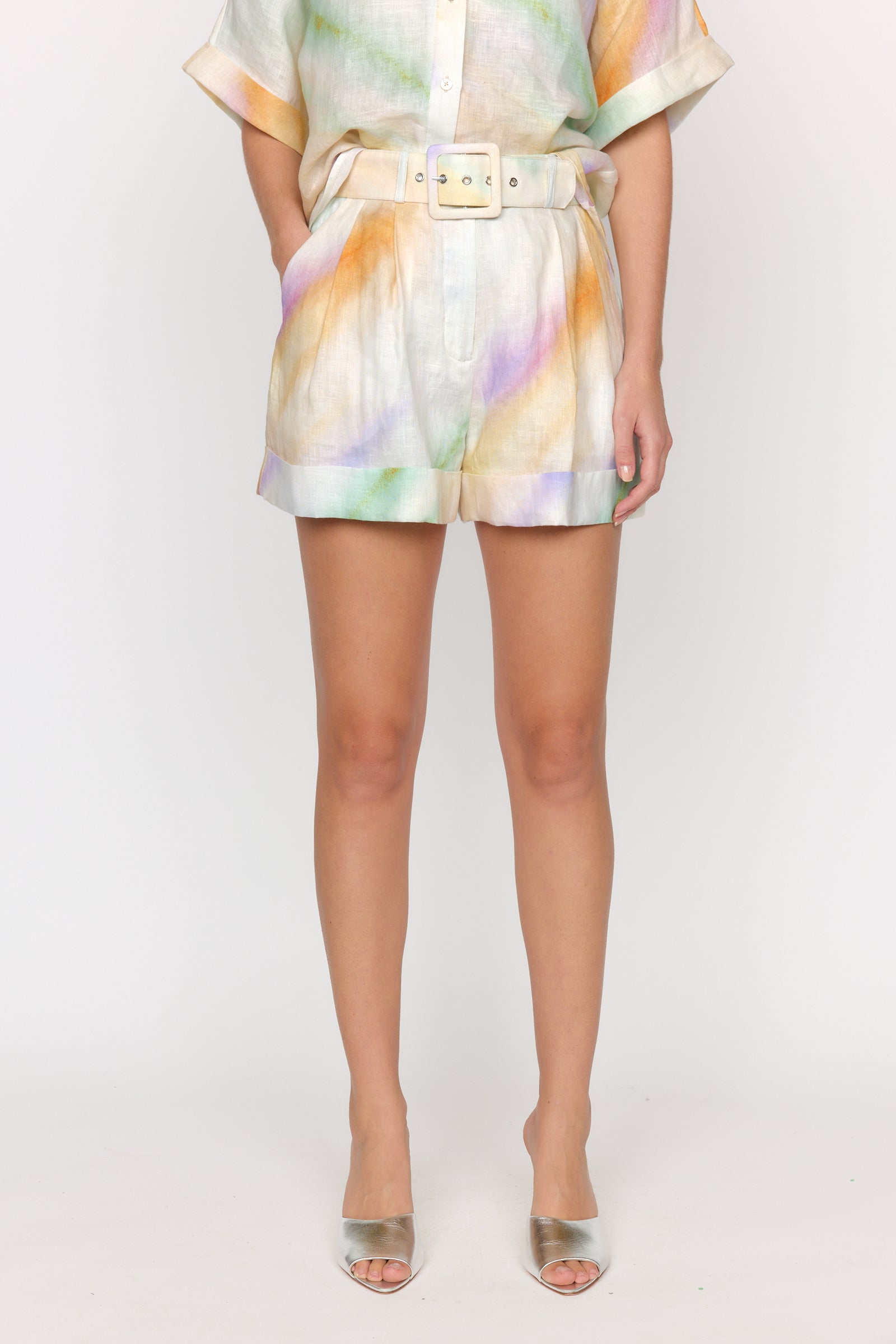 The Christy Lynn Lola Short in Cloud offers a perfect blend of comfort and elegance. Crafted from lightweight, breathable linen in a soft Cloud print, these tailored shorts feature a gracefully folded hem and an elastic back for a comfortable fit. The metal zipper and hook-and-bar closure add a refined touch, making them effortlessly versatile for any occasion. Elevate your wardrobe with these sophisticated shorts that pair seamlessly with any outfit.