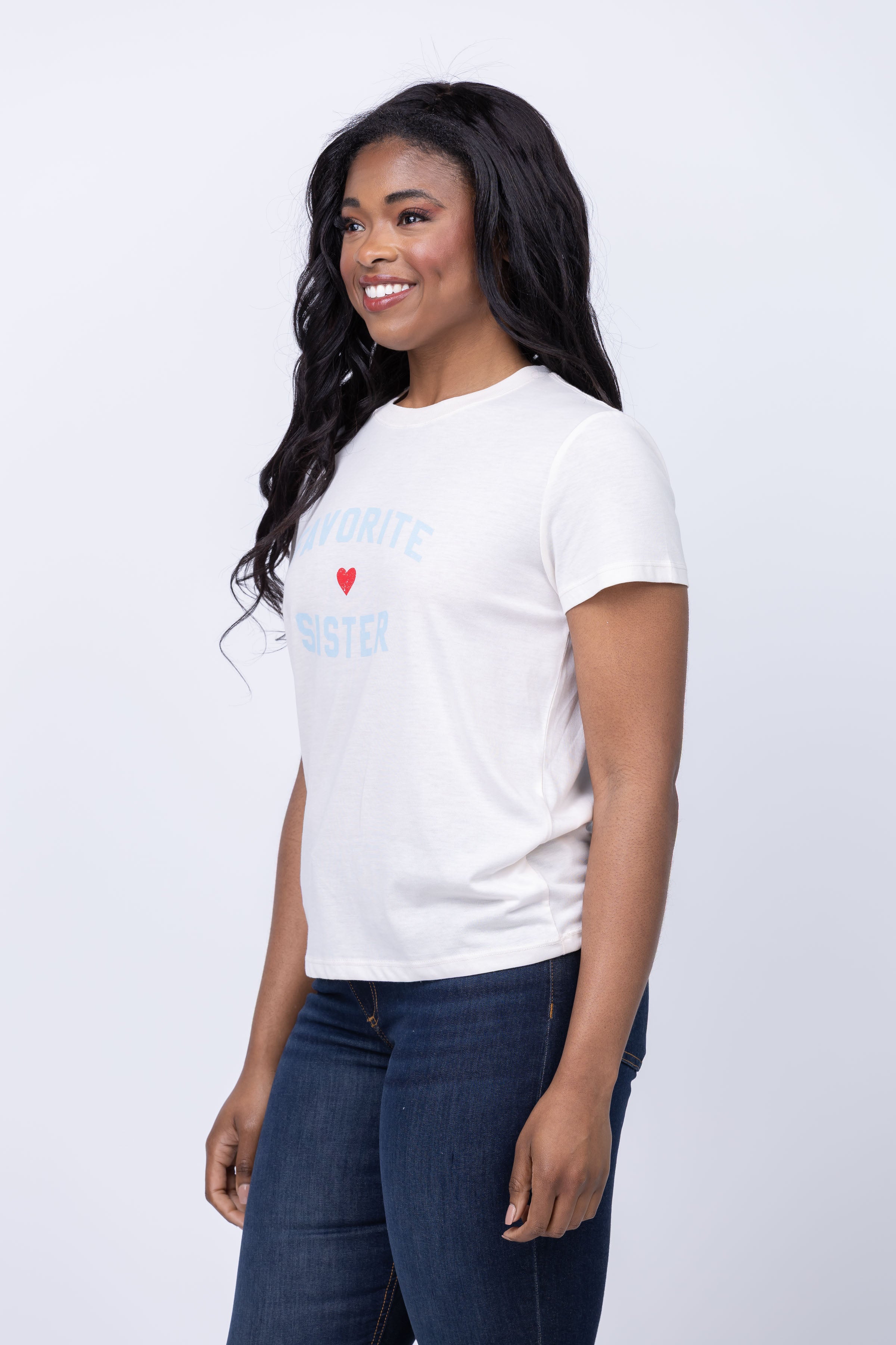 Favorite Daughter Favorite Sister Tee in Gardenia/ Baby Blue
