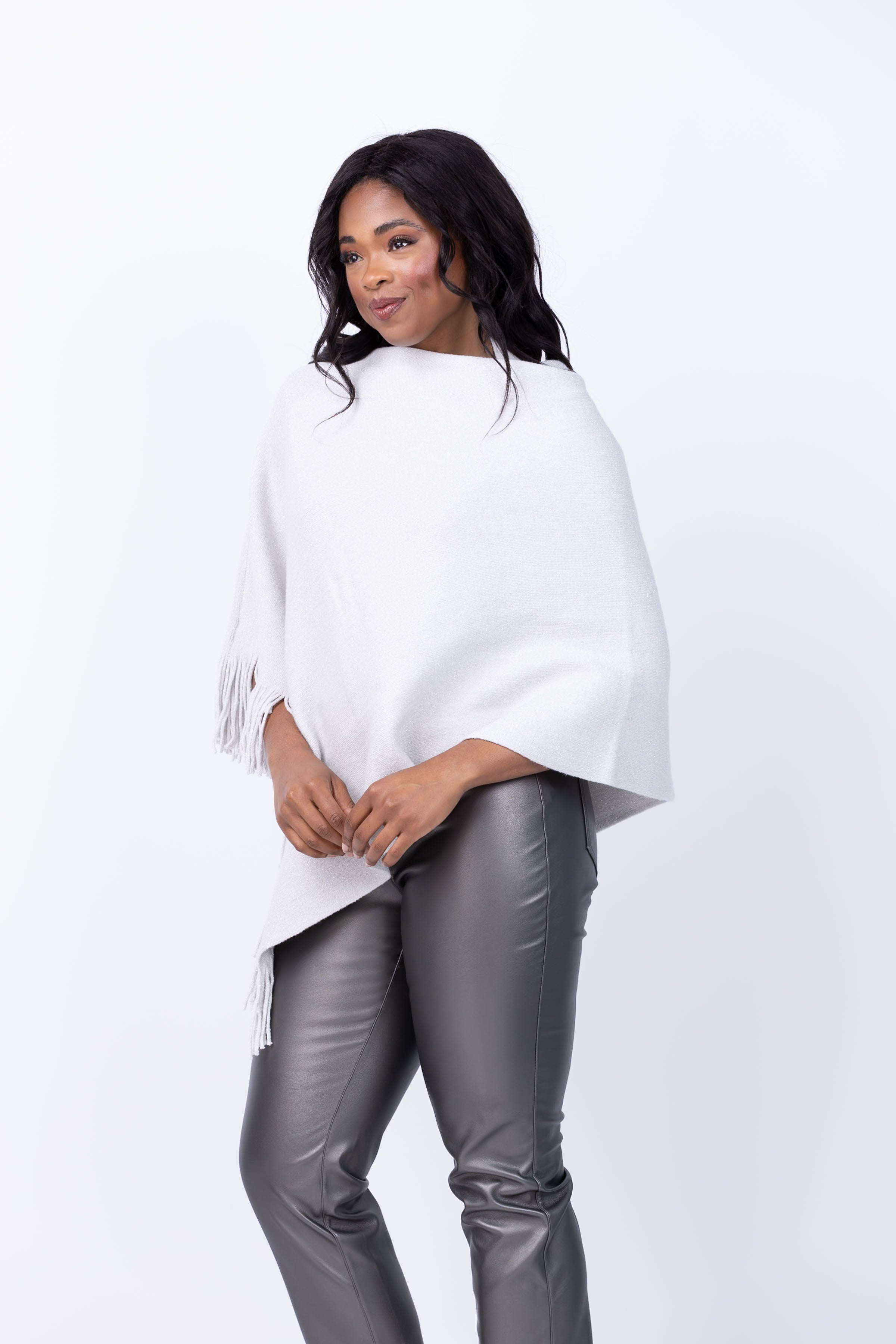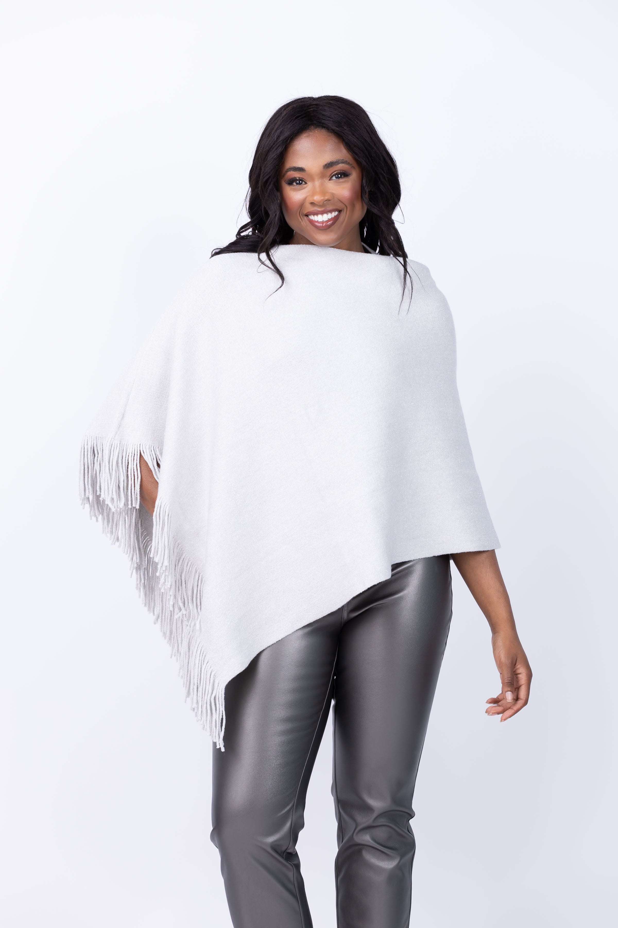 Elevate your winter wardrobe with our Nic + Zoe Metallic Go To Poncho! The metallic yarn adds a touch of shimmer to your coziest layer, while the knit-in fringe adds texture. Wear it in multiple ways and feel effortlessly stylish with its boatneck head opening. Stay warm and fashionable.