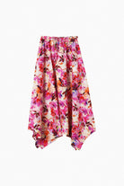 Experience effortless style with the Ulla Johnson Madelyn Skirt in Azalea. Made from crisp poplin, its vibrant layered botanical print adds a fresh, eye-catching touch. The elastic drawstring waist ensures a comfortable, adjustable fit, while the classic A-line silhouette flatters every figure. Practical side pockets and a midi-length hemline complete this versatile skirt, perfect for day-to-night wear. Elevate your wardrobe with a piece that blends elegance and ease seamlessly.