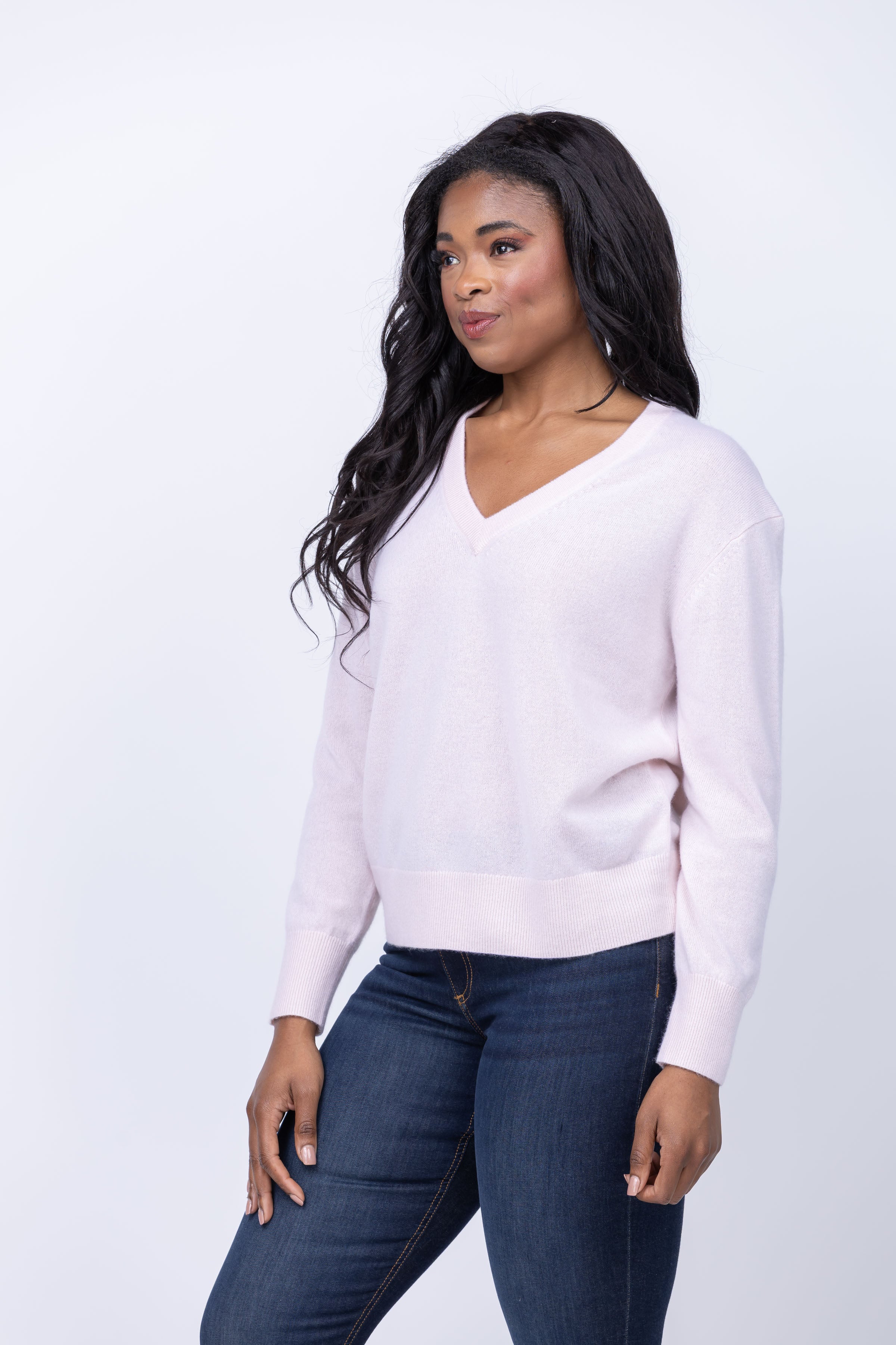 Experience the perfect blend of comfort and sophistication with the White + Warren Cashmere V-Neck in Pink Sand. Crafted from 100% responsibly sourced Mongolian cashmere, this sweater offers a relaxed fit enhanced by a center-back rib detail for subtle style. Its classic weight makes it ideal for year-round wear, while the flattering V-neckline and ribbed trim add polished finishing touches. Effortlessly pair it with high-waisted skirts or wide-leg jeans to elevate your everyday wardrobe with timeless elegance.