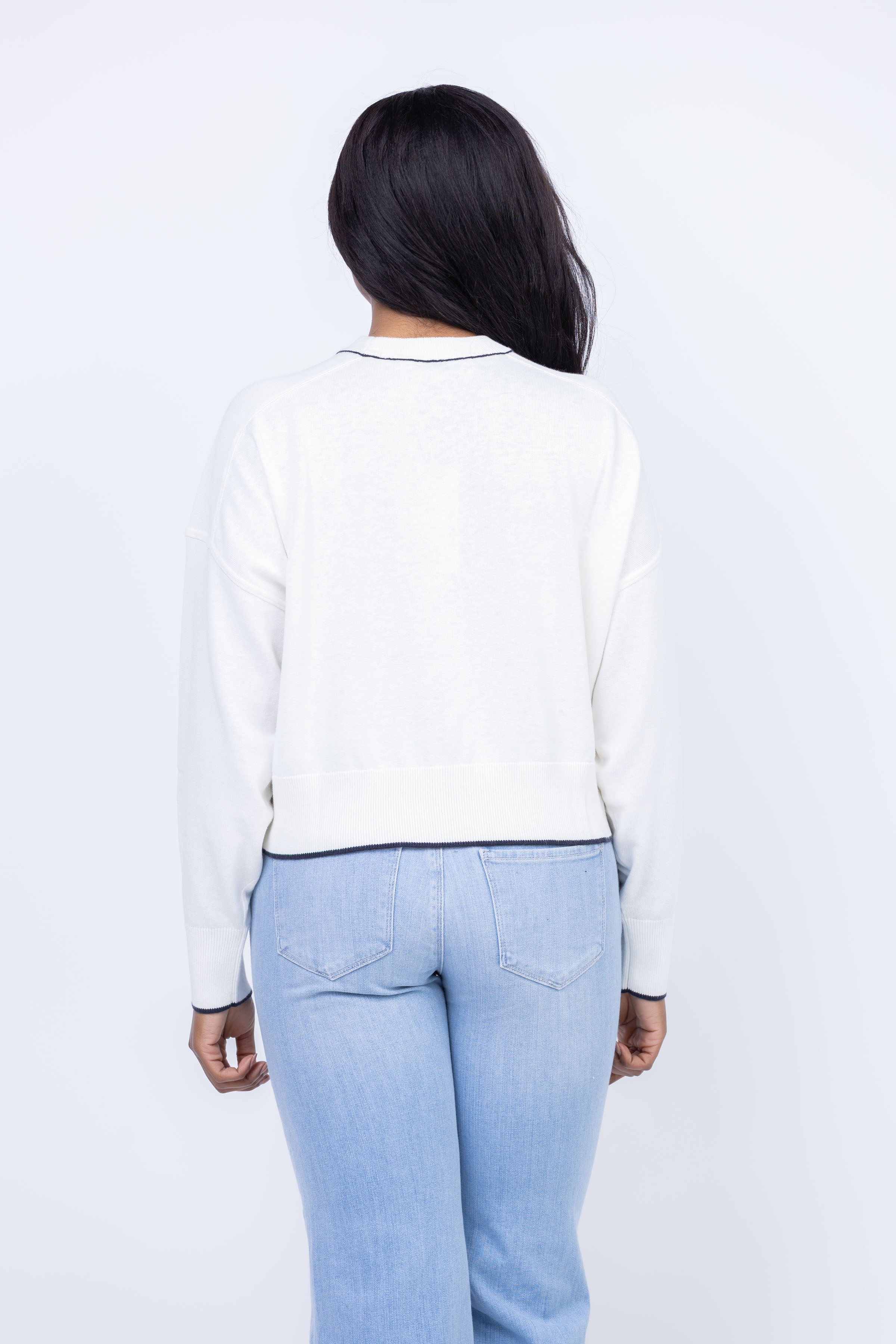 The White + Warren Fine Cotton Blend Cropped Sweatshirt in White/Deep Wave offers a refined take on loungewear with a soft, second-skin feel you'll love wearing daily. Its thoughtful sleeve and neckline details elevate this essential piece from casual to chic. The waist-grazing cropped fit pairs perfectly with denim or joggers, creating an effortlessly stylish off-duty look that combines luxury and comfort.