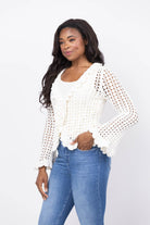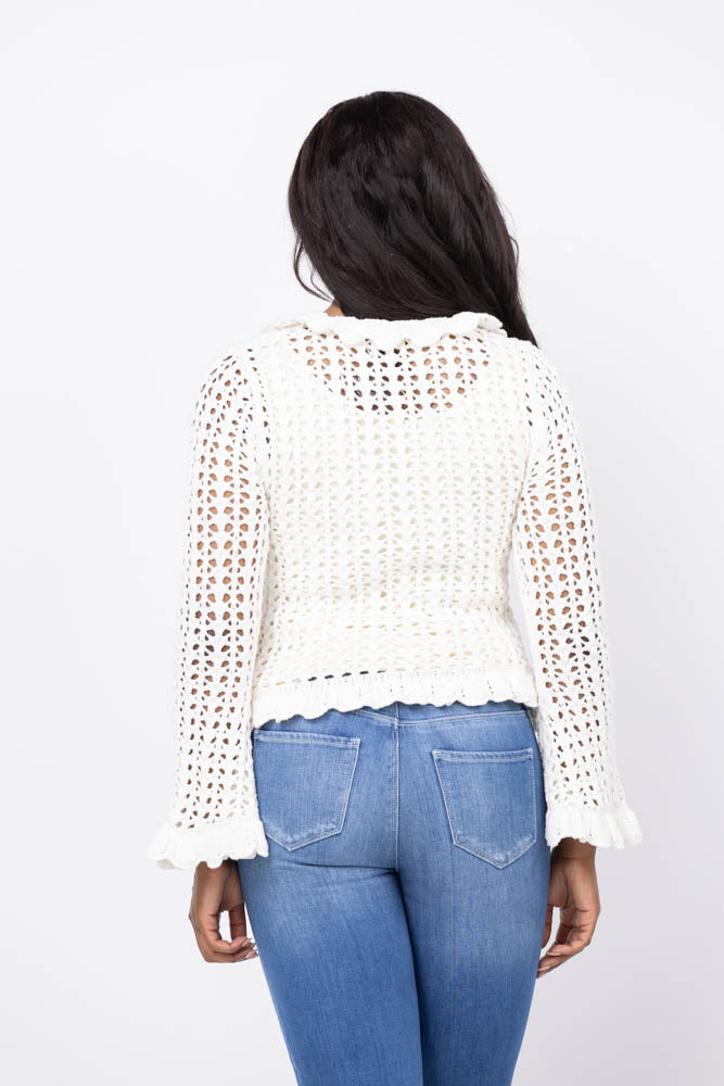 Embrace summer’s breeze with the L'AGENCE Solaris Open Stitch Cardi in Ivory. This feminine, airy crochet cardigan features delicate ruffled trims that add a soft, elegant touch. Lightweight and breathable, it’s perfect for layering over a bikini at the beach or pairing with a camisole and jean shorts for casual outings. The Solaris Cardi effortlessly combines style and comfort, making it your go-to piece for warm-weather days.