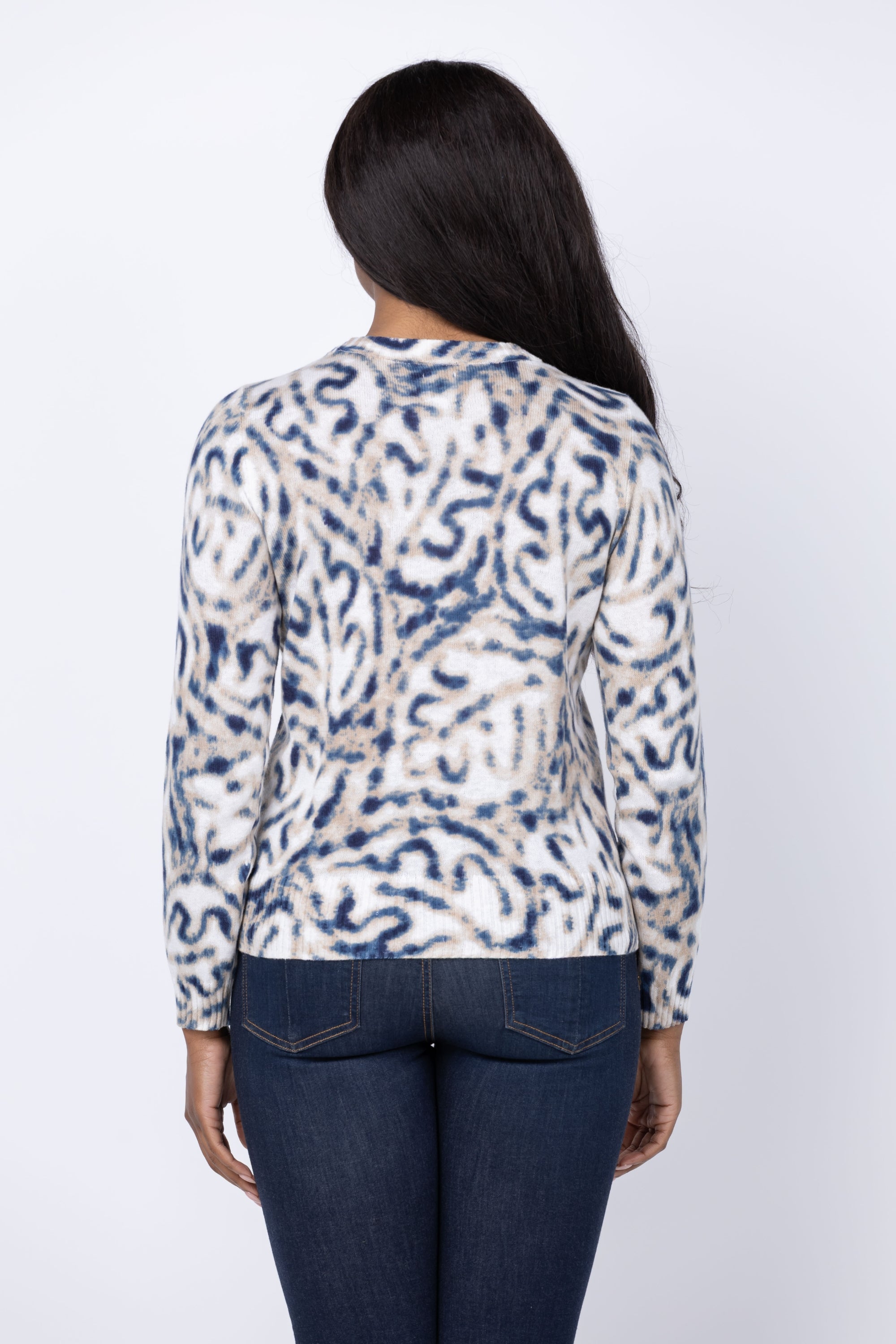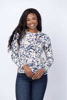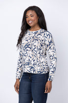 NIC + ZOE Blurry Leaf Supersoft Sweater in Indigo Multi