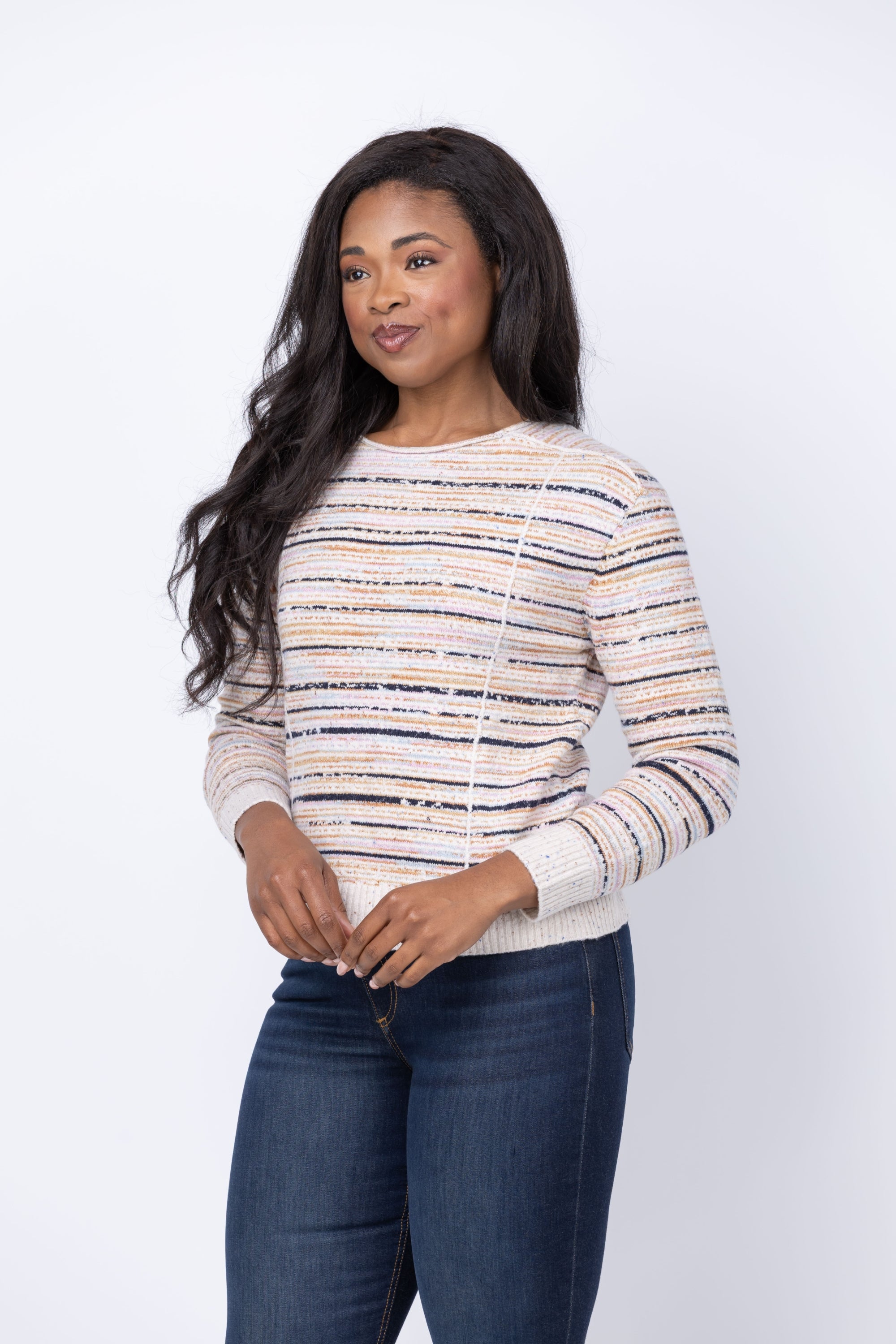NIC + ZOE Mirage Seamed Sweater in Pink Multi