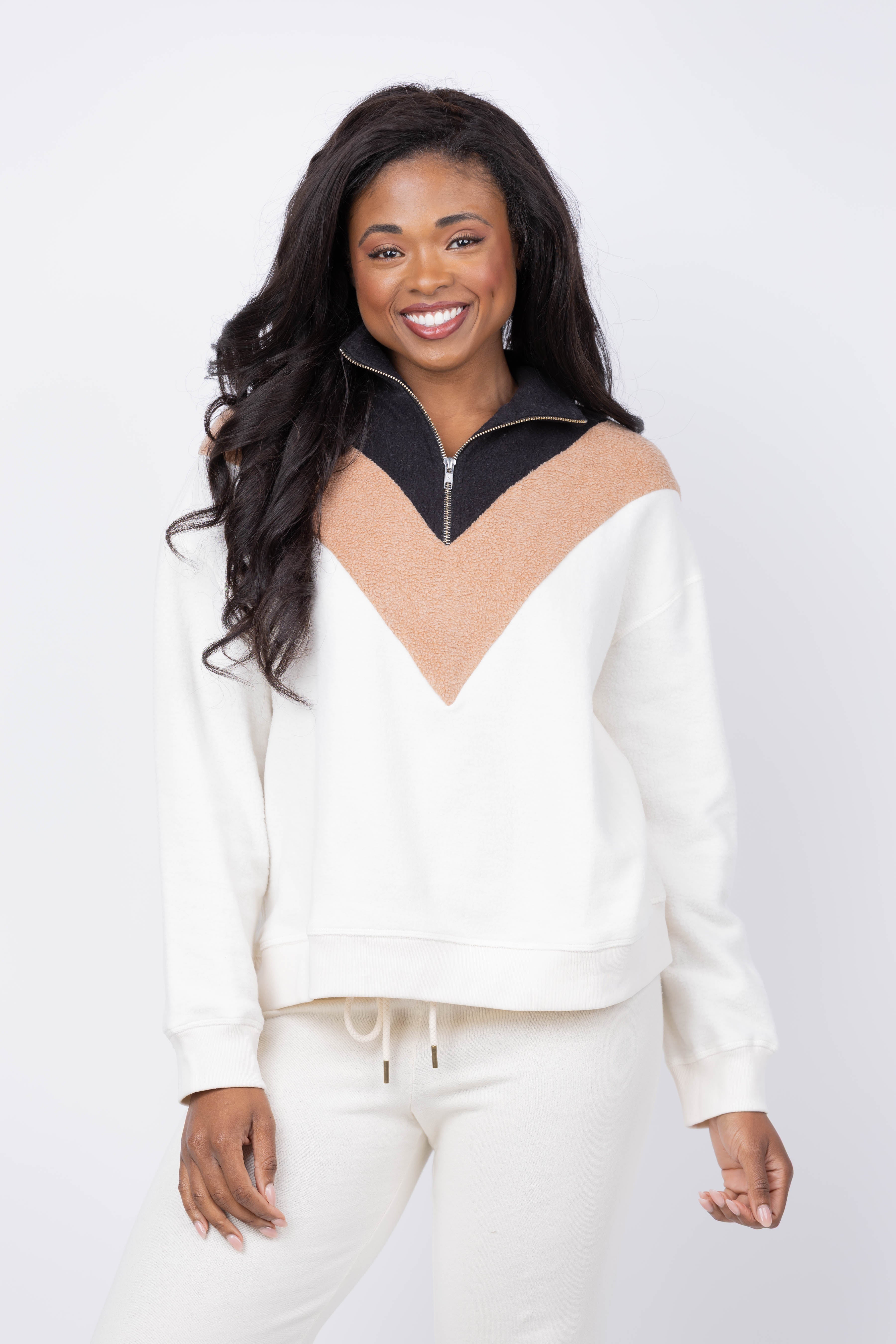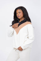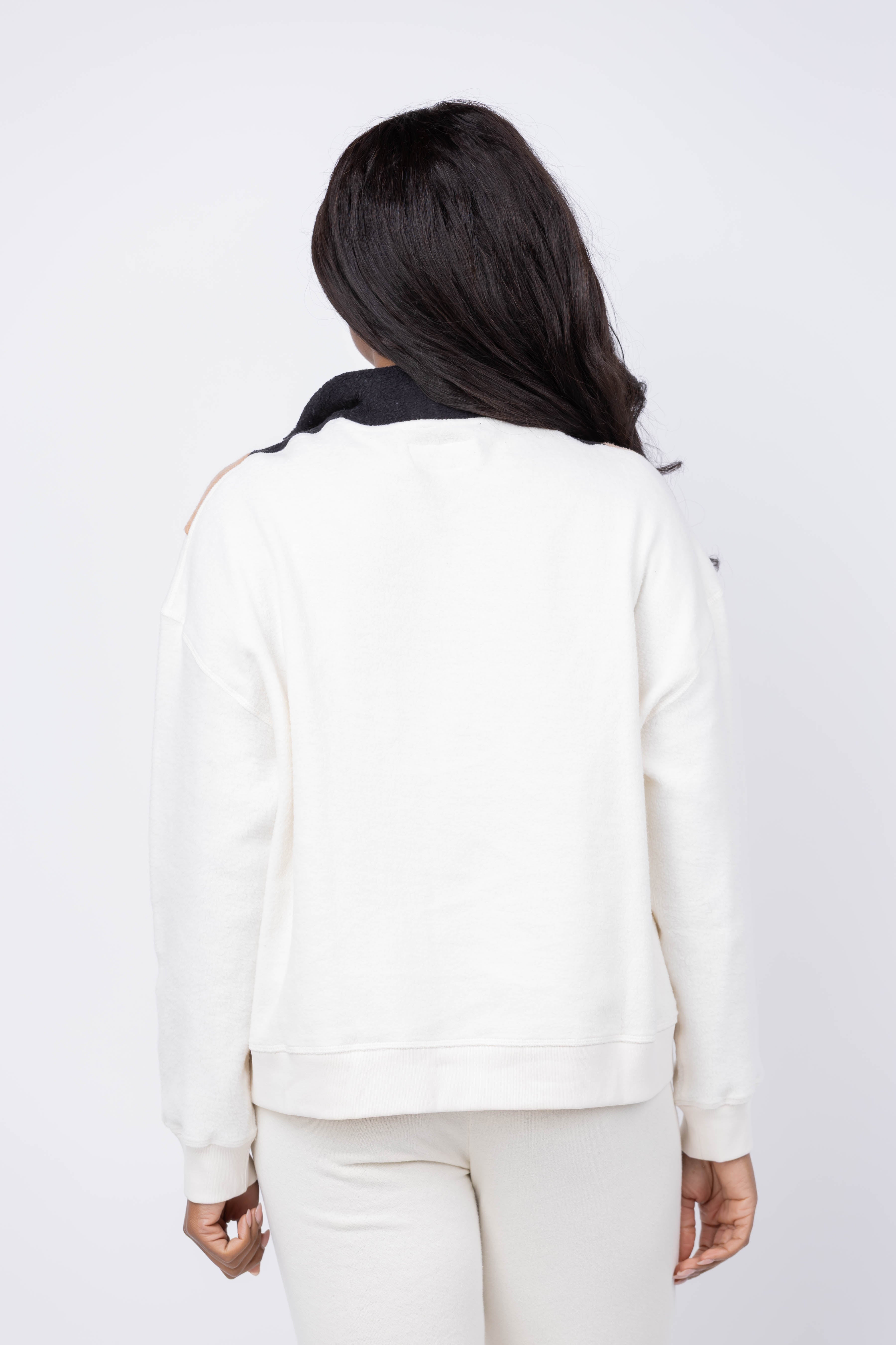 The Great. The Colorblock Plush Chalet Sweatshirt in Washed White