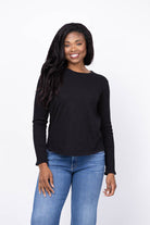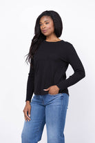 The Elliott Lauren Black Long Sleeve Tee offers a comfortable fit that isn’t too tight, making it perfect for everyday wear. Featuring a classic crewneck design, this tee pairs effortlessly with any outfit while providing timeless style. Its soft fabric ensures all-day comfort, ideal for layering or wearing on its own. Elevate your wardrobe with this versatile essential.