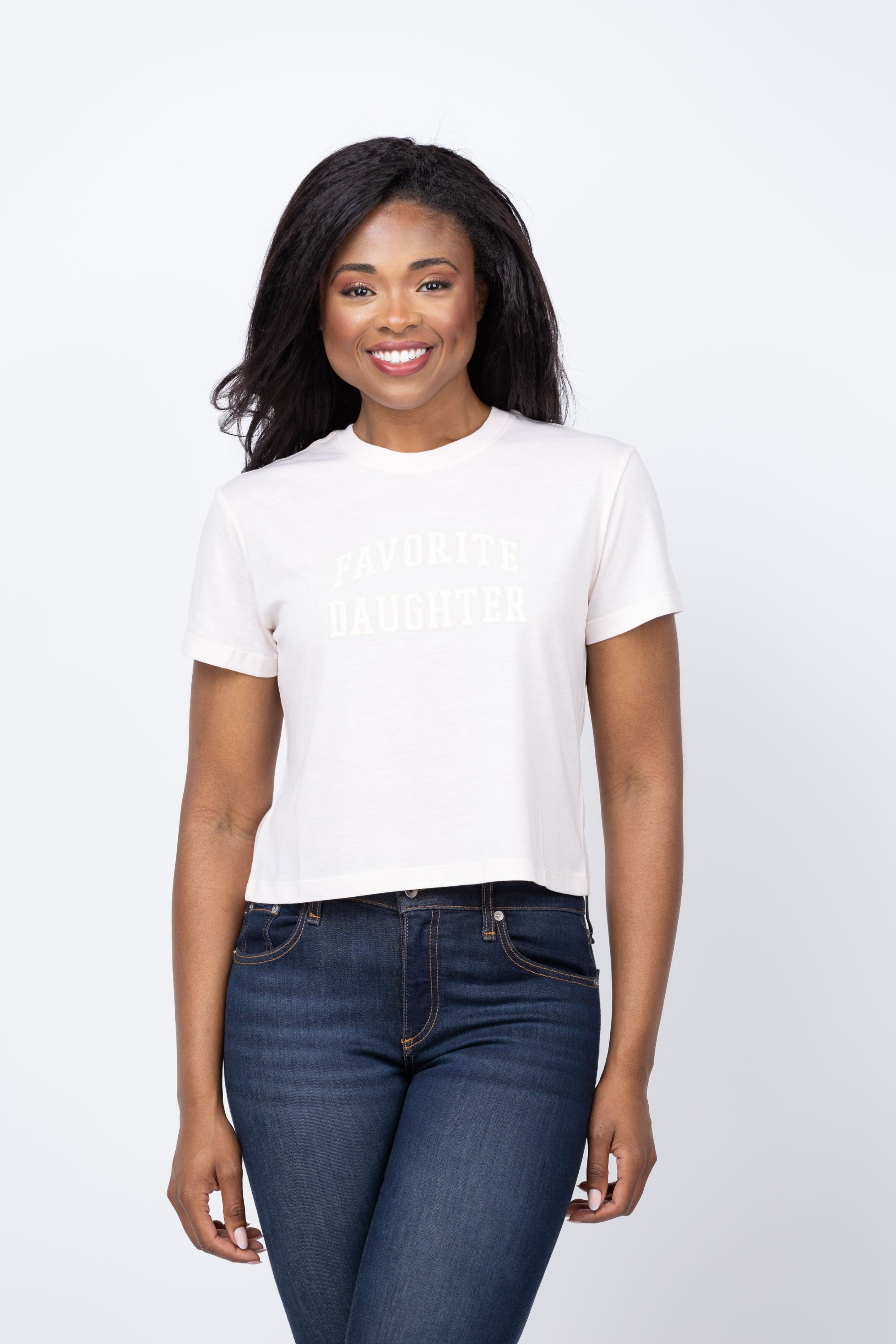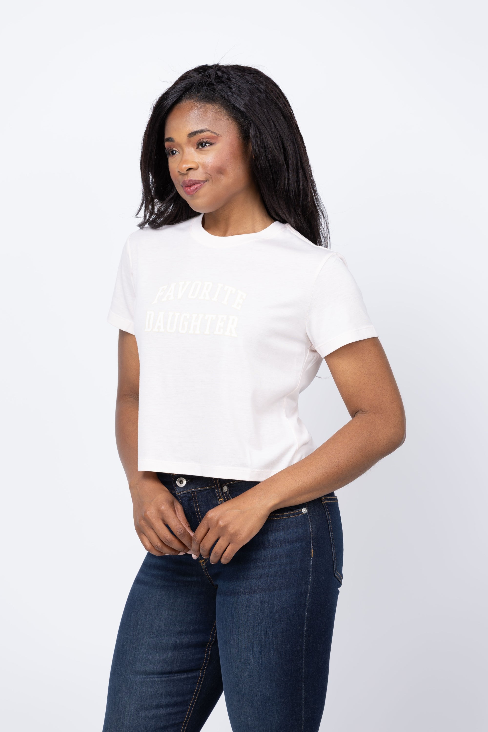 Stand out and make a statement with the Favorite Daughter Cropped Collegiate Tee. Made with a soft tri-blend cotton, this tee features a classic cut and a cropped fit for a versatile and trendy look. Perfect for running errands, a Friday night out, or even a family reunion. Don't be shy, show off your favorite status!