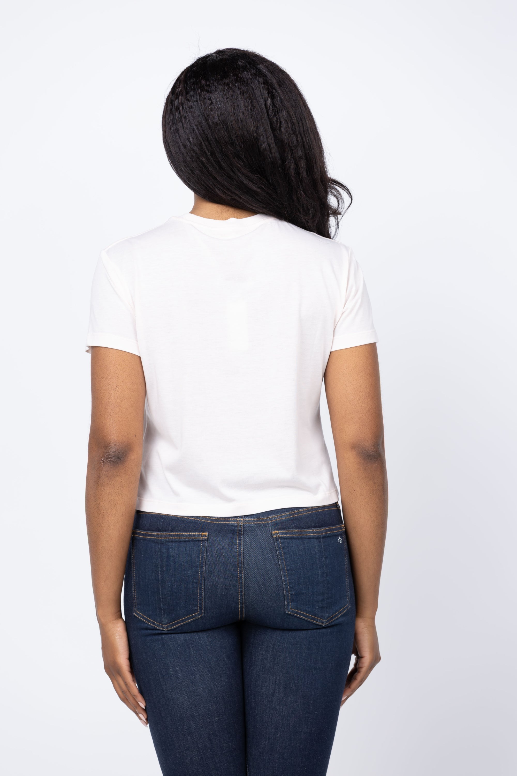 Favorite Daughter Cropped Collegiate Tee In Rosewater/Snow White